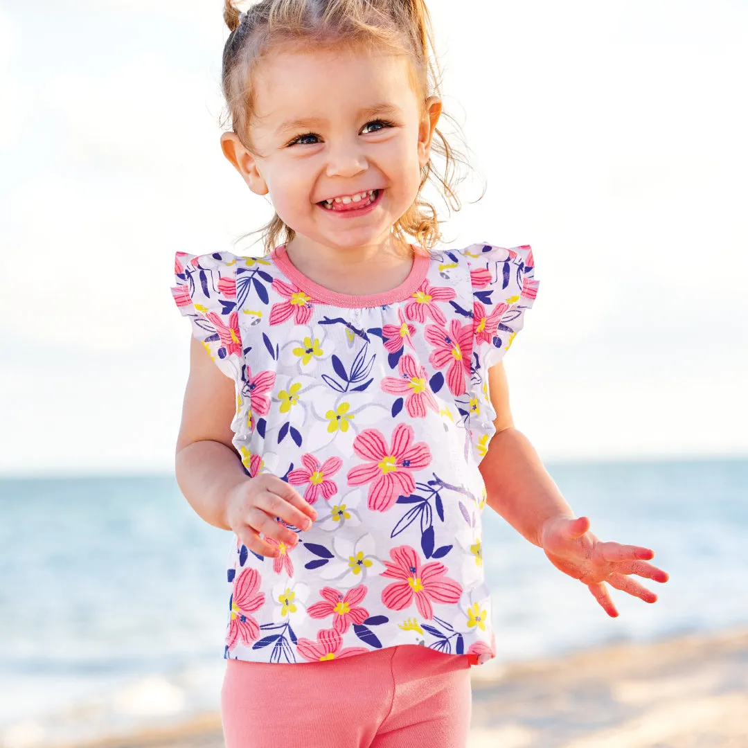 This 3-pack of T-shirts adds fashionable versatility to your little one's wardrobe and are so fun to mix match. Featuring ruffles at the shoulders and a super-comfy fit, these tops will be your go-to this season. Crafted from the softest organic cotton and made for all day play.