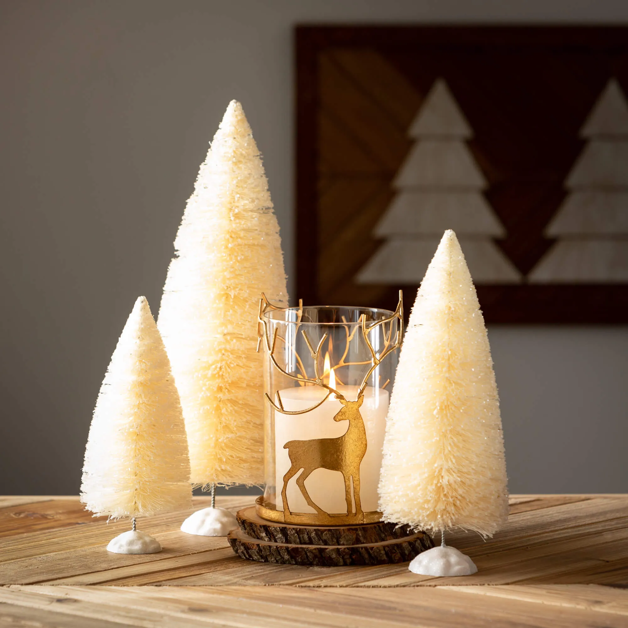 The Holiday season just got a little more elegant with these brushed gold pillar candle holders. Featuring tasteful antlered deer, this set of two candleholders are a lovely addition to a woodland-themed Christmas. Versatile enough to compliment a variety of decorating styles, they are also neutral enough to stay on display all winter long.
