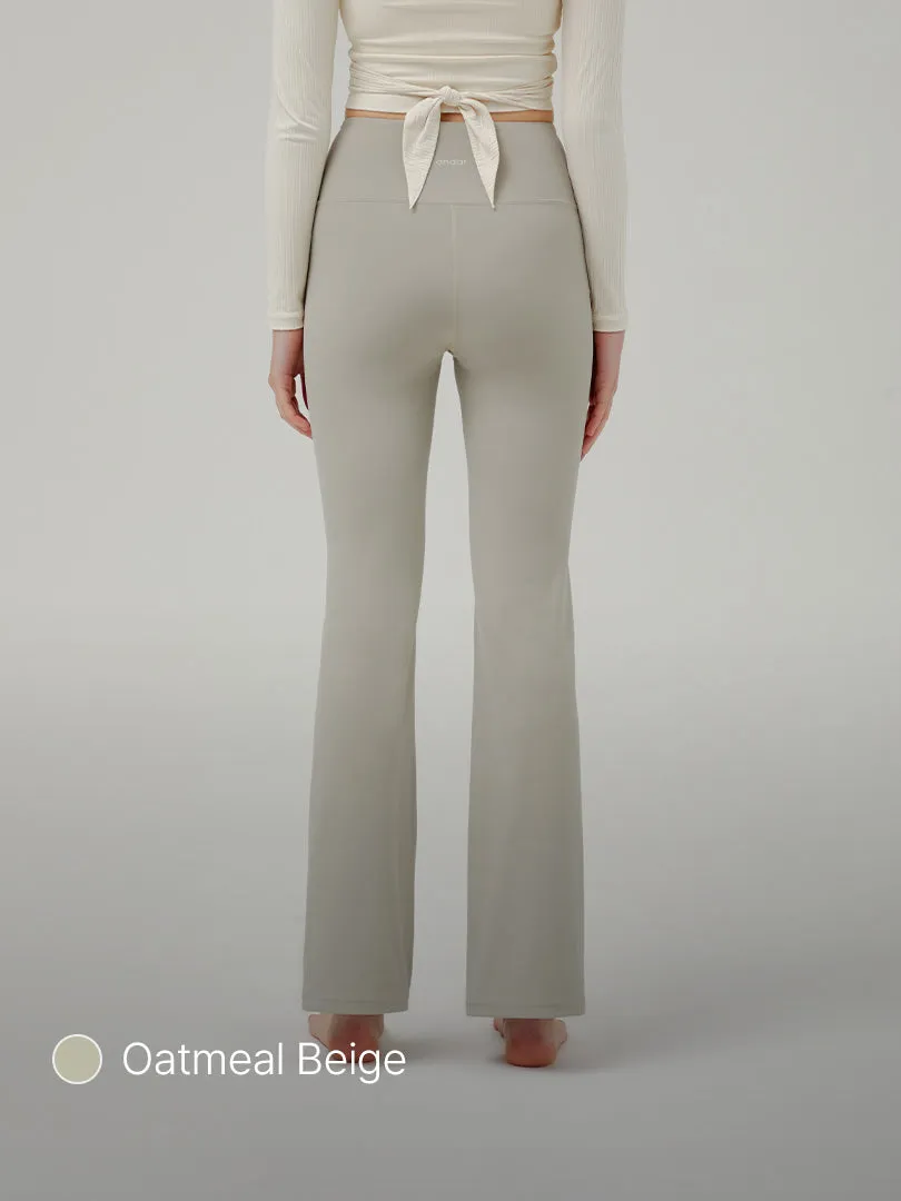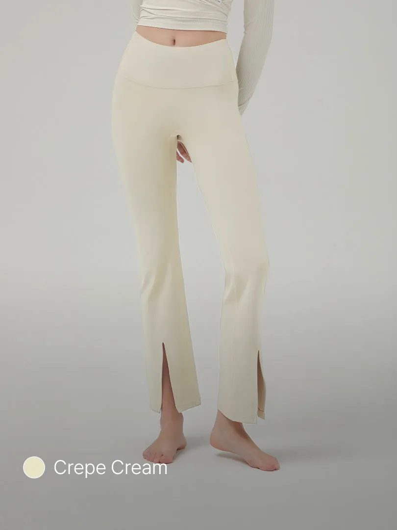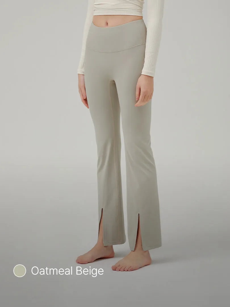 Camel-toe free front split-hem flare leggings create illusion of longer legs. Best elasticity for a dreamy fit. Outfits for a day out to work out.