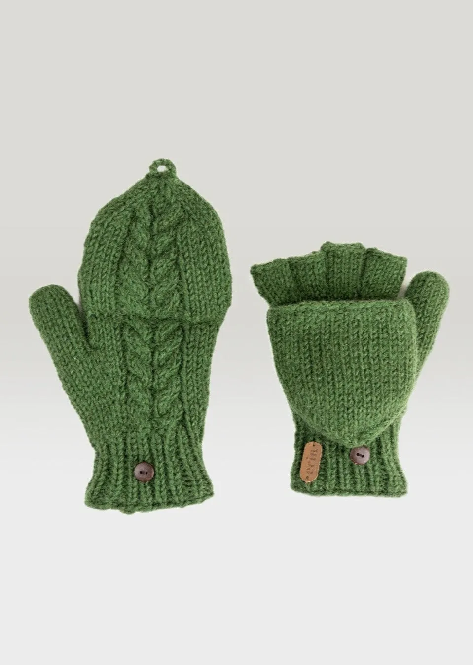 Indulge in the luxury of the Aran Cable Hunter Gloves, crafted by Erin Knitwear in the rolling hills of Ireland from 100% wool for a wonderfully soft texture and comforting warmth. Featuring a fleece lining for additional warmth and comfort, these delightfully warm gloves are ideal for braving cold winter days. With a convenient flap to free your fingers, these one-size gloves are an essential addition to any winter wardrobe.