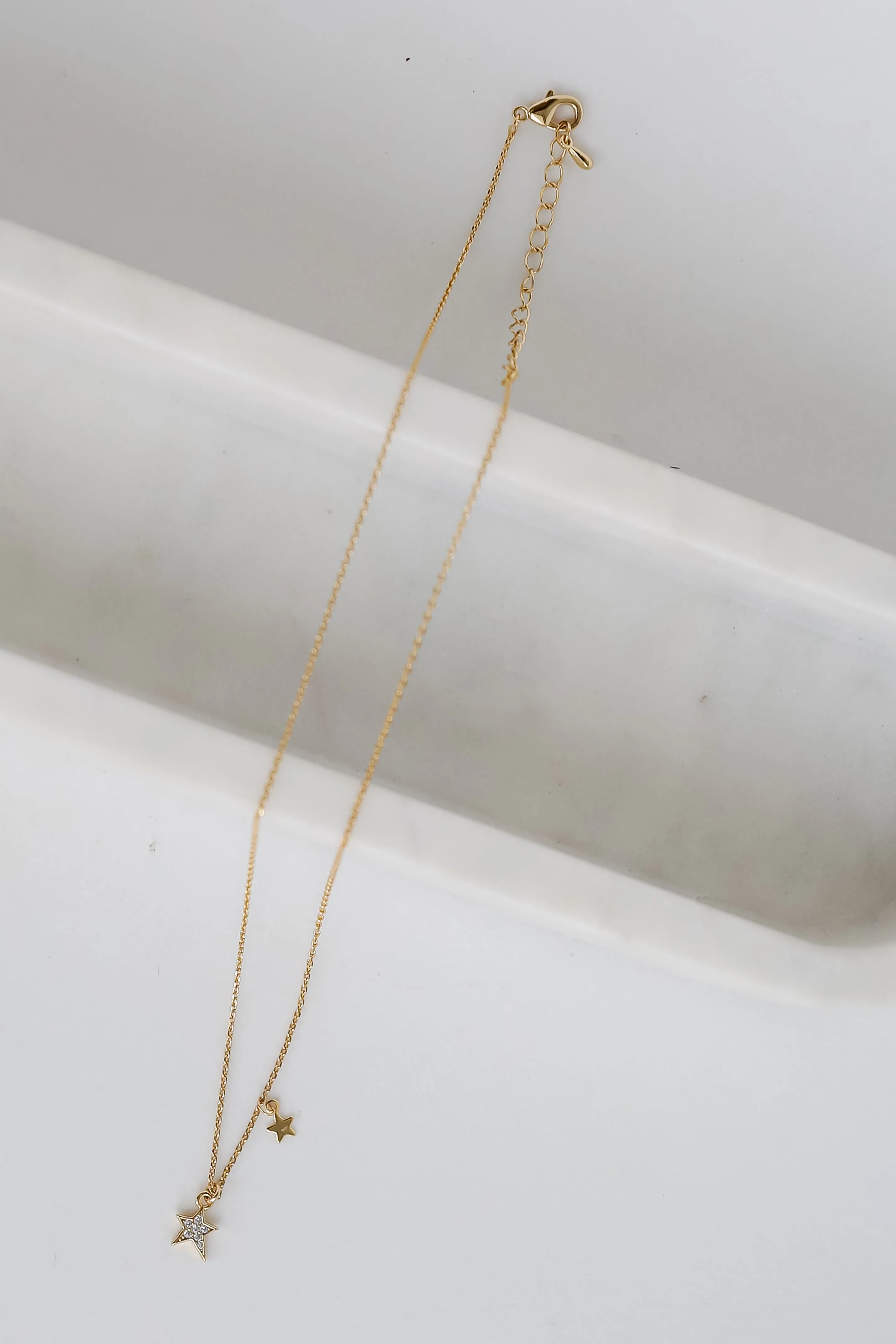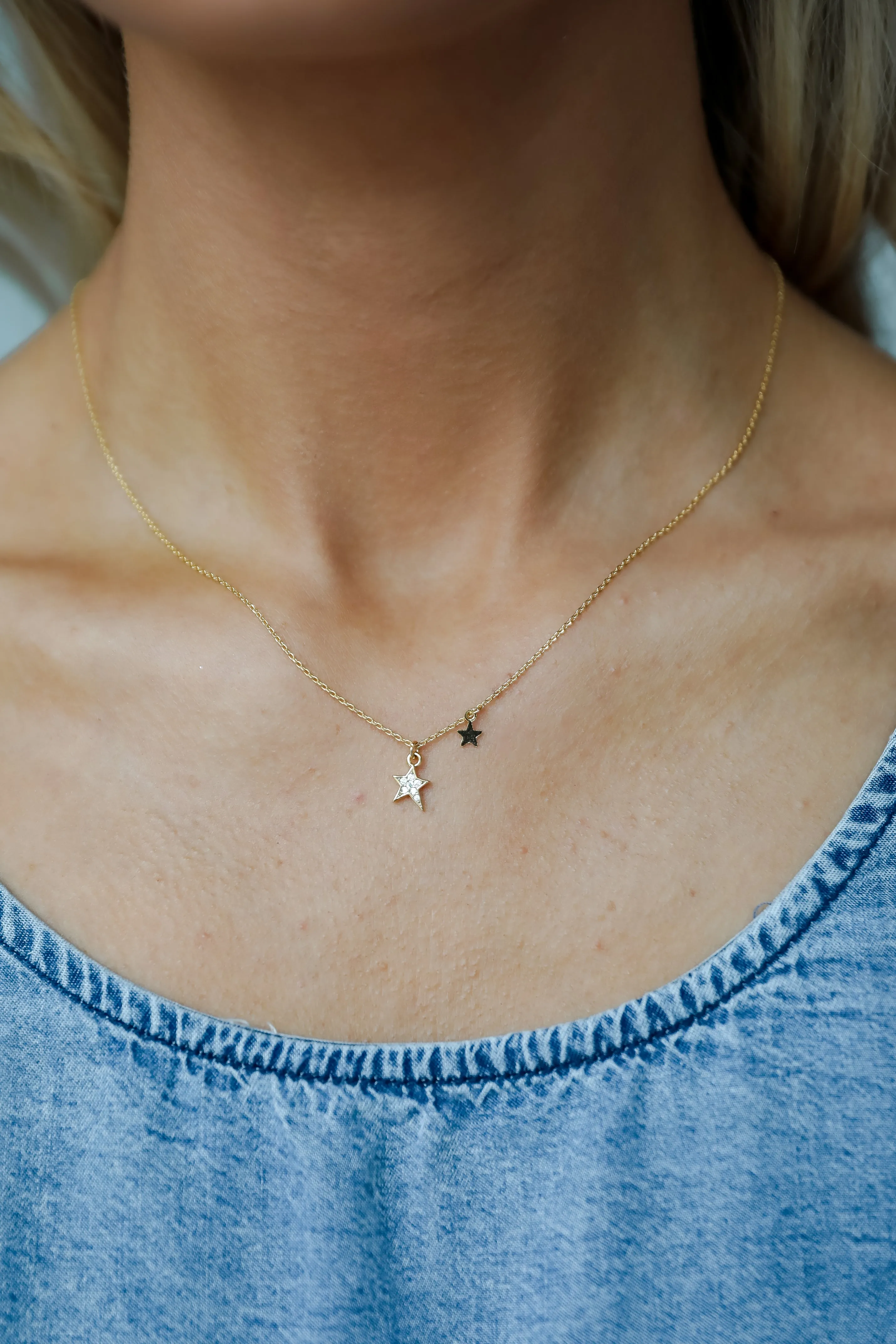 Add a little sparkle to your summer looks with the Aria Gold Rhinestone Star Charm Necklace! This cute necklace features a simple gold chain with a rhinestone star charm on the end. Style the Aria Necklace with any outfit to instantly upgrade your look!
