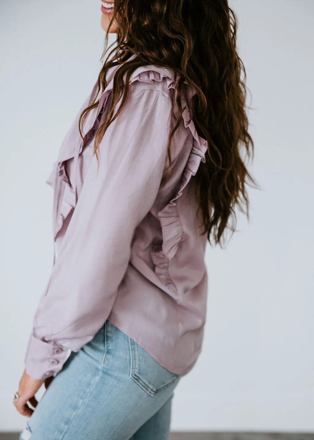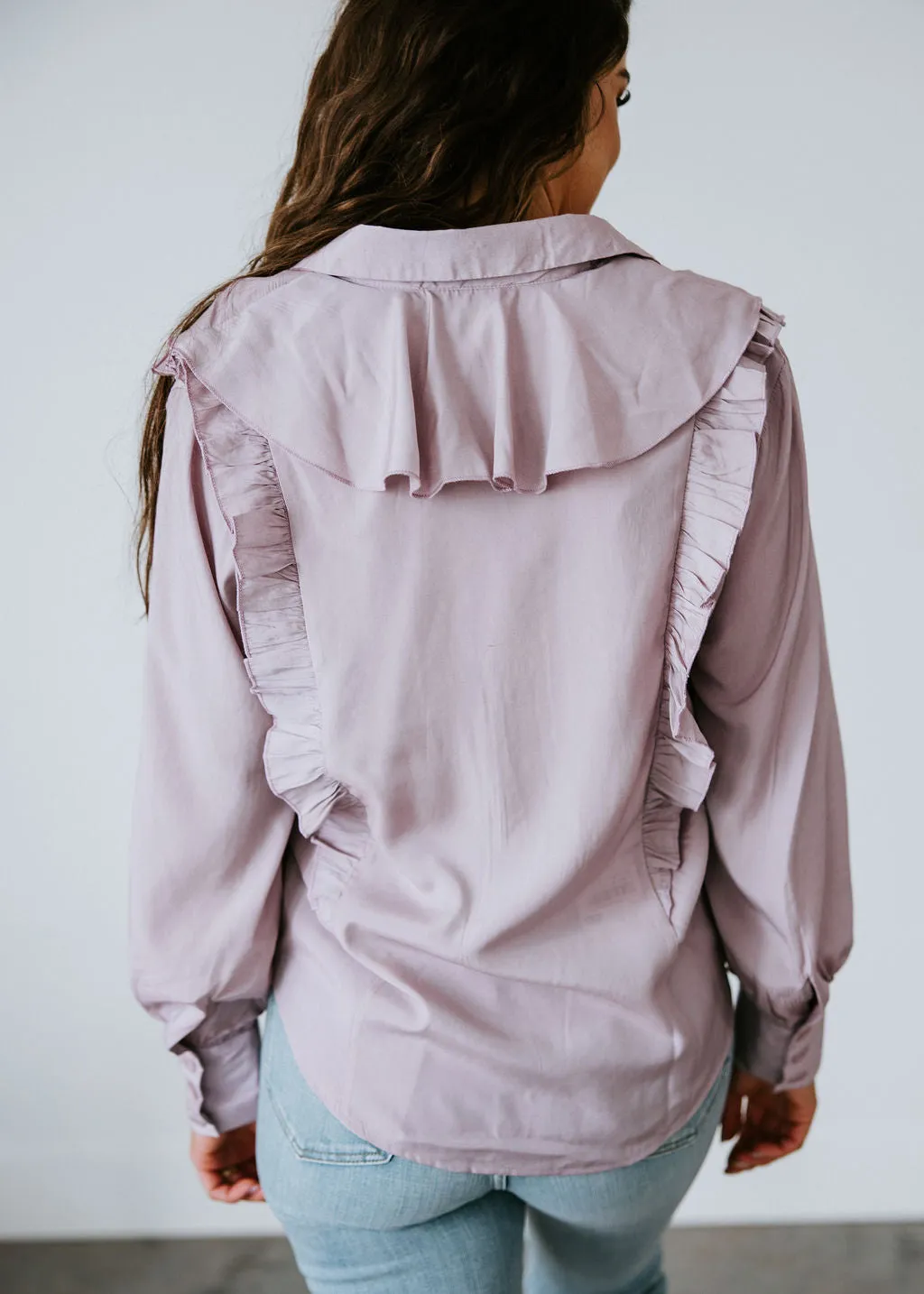 Enjoy timeless fashion with Ayesha Collared Blouse. This blouse features an overlayer ruffle front tie with a button down and tie string on the front. The long sleeve with button on cuffs and ruffle wide collared brings out the refined look with a clean curved hem to finish. Perfect for any special occasion. Kara is wearing a small.