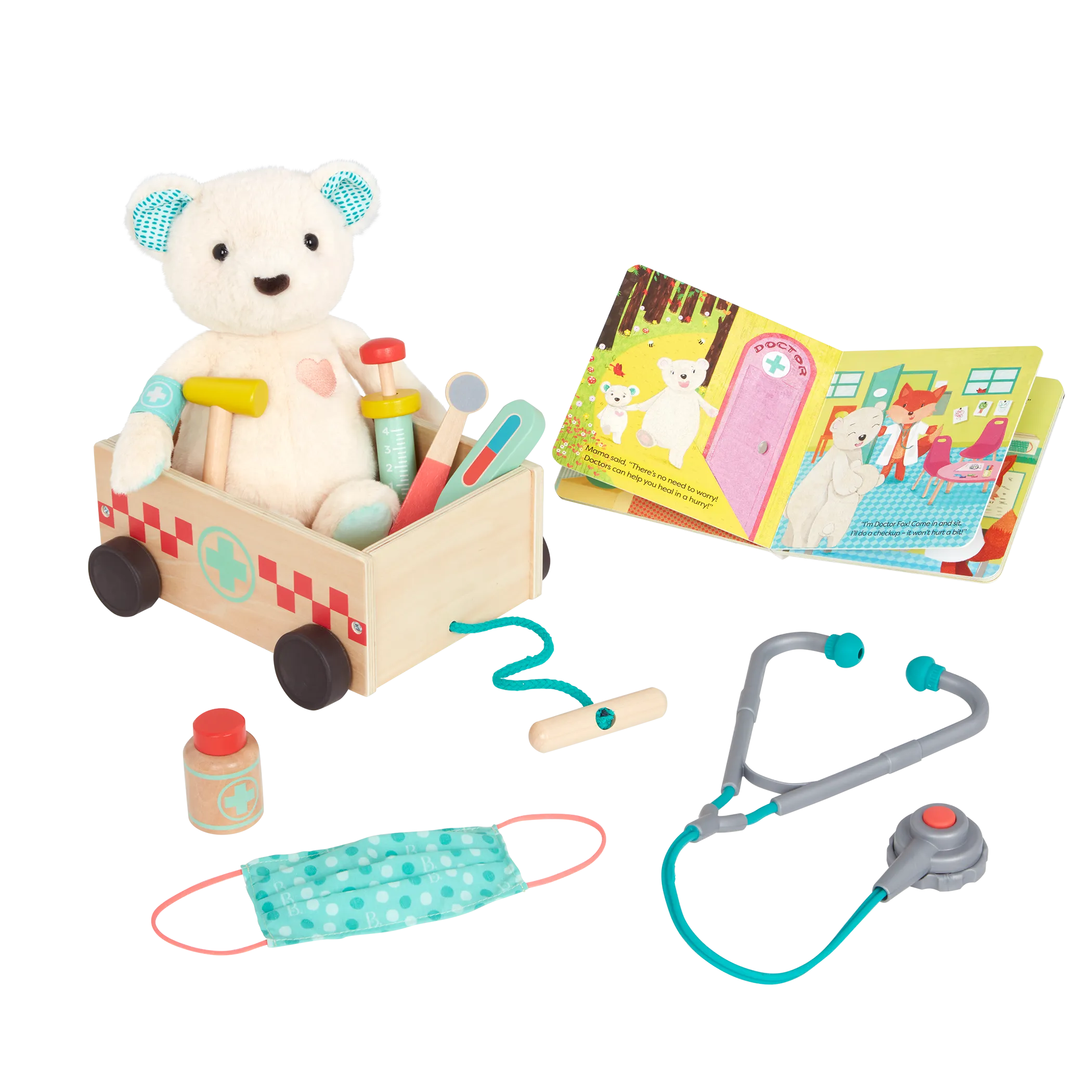 Once kids tend to all of their patients, they can cuddle up with Bobby Bear and settle in for a story – this set comes with an educational board book that introduces little ones to the process of going to the doctor. In turn, playing with the realistic doctor tools and listening to Bobby Bear’s story can help toddlers feel more comfortable around real doctors!