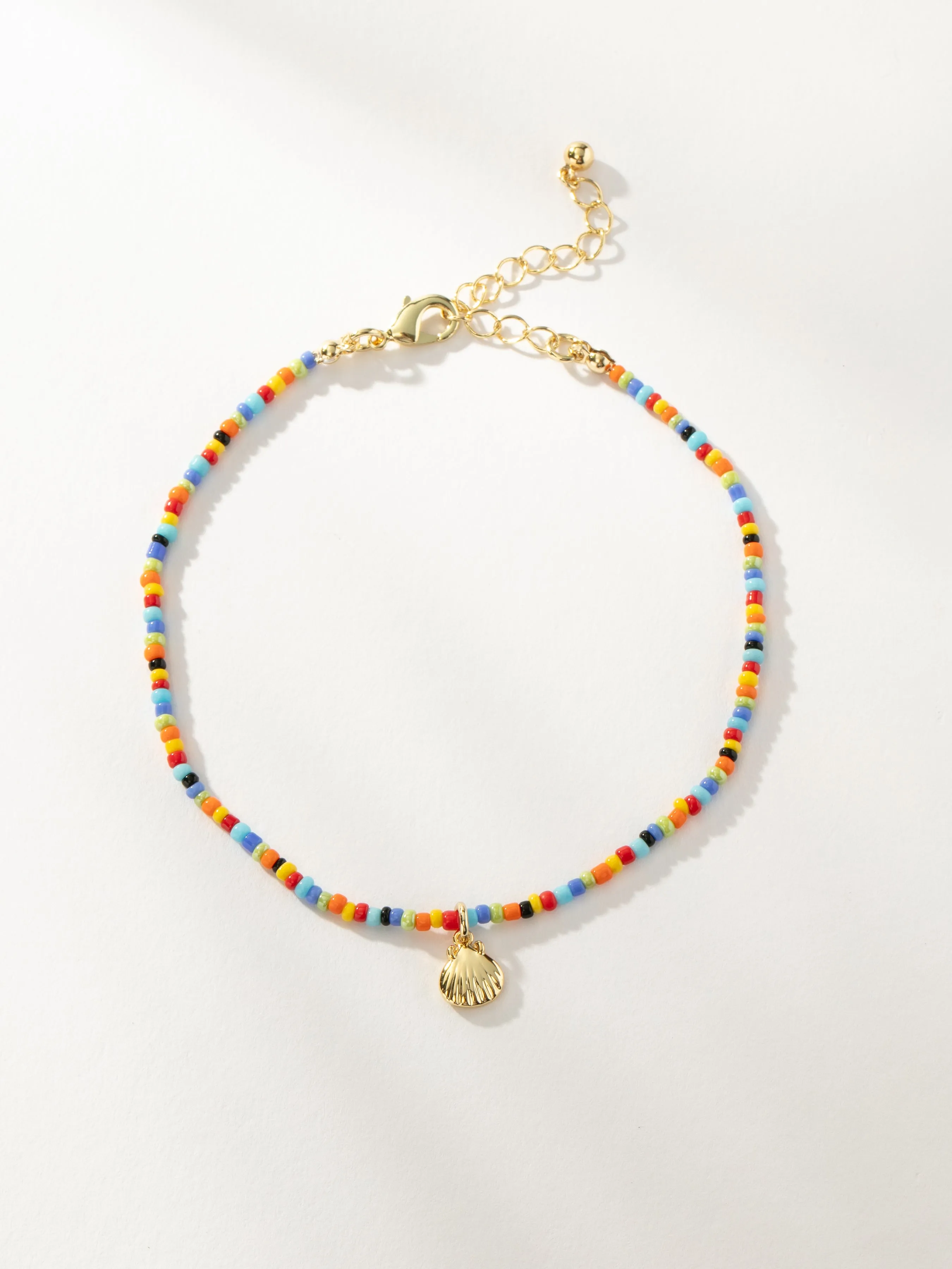 Nothing says summer like a beaded anklet. This colorful anklet is ready for sun soaked beach days thanks to its gold shell charm. doesn’t get much better than our Beaded Shell Anklet, , and — you might as well get the full look.