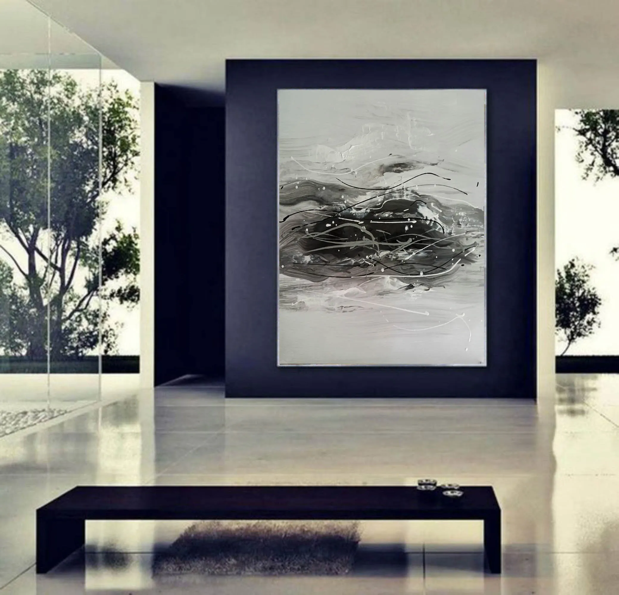 Black And White Abstract Painting Minimalist Painting Cp029