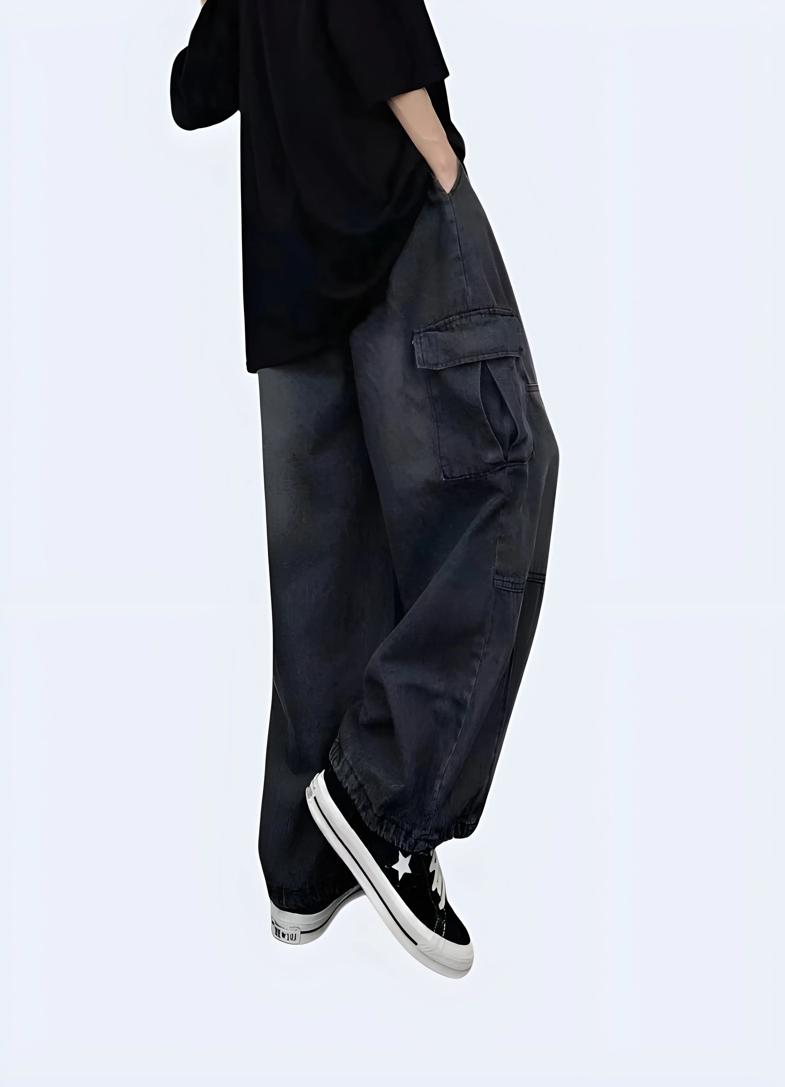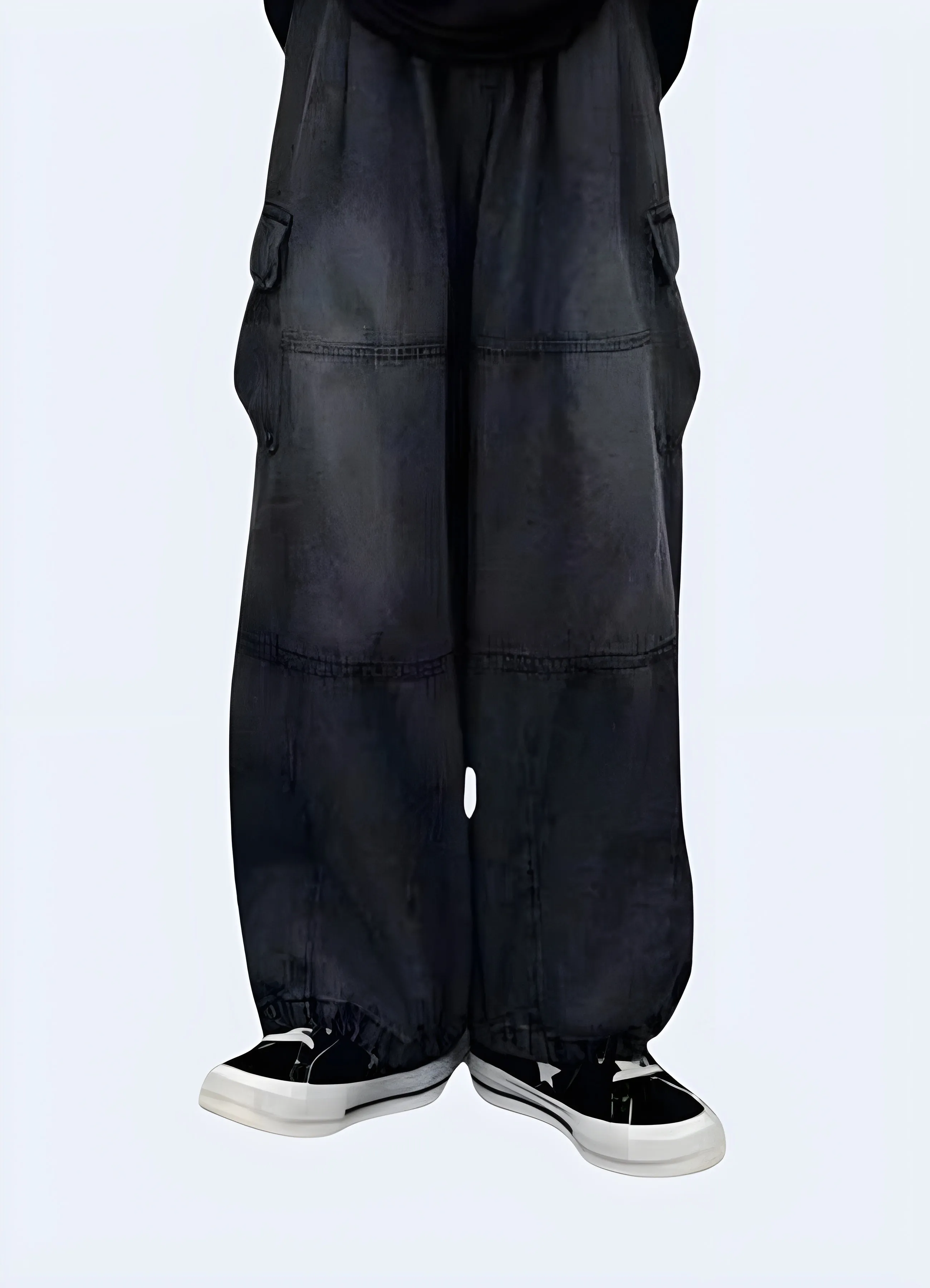 Our Black Baggy Cargo Pants Women are designed for the woman on-the-go who wants to look great without sacrificing comfort or practicality. The loose, relaxed fit is perfect for running errands, exploring the city, or simply lounging at home, while the durable fabric and quality construction ensure that these pants will last for seasons to come. Dress them up with a cute top and sneakers, or keep things casual with a cozy sweater and boots - the styling possibilities are endless with these versatile ebony loose-fit utility trousers ladies.