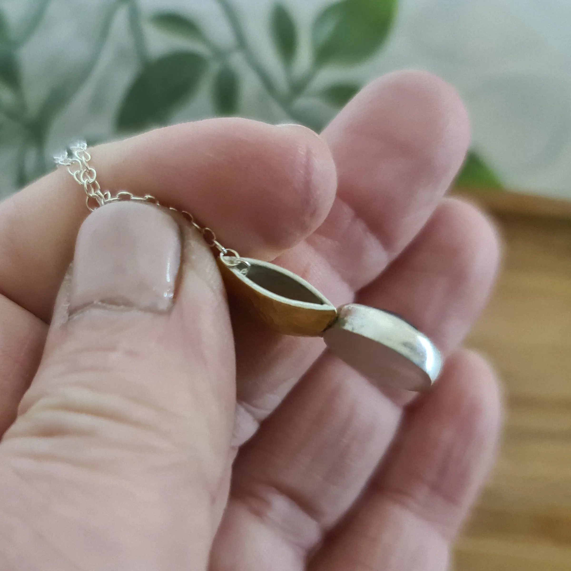 The hollow bead doubles as the pendant's bail, with a sterling silver trace chain threaded though it. The chain can be fastened at 16", 17" and 18".