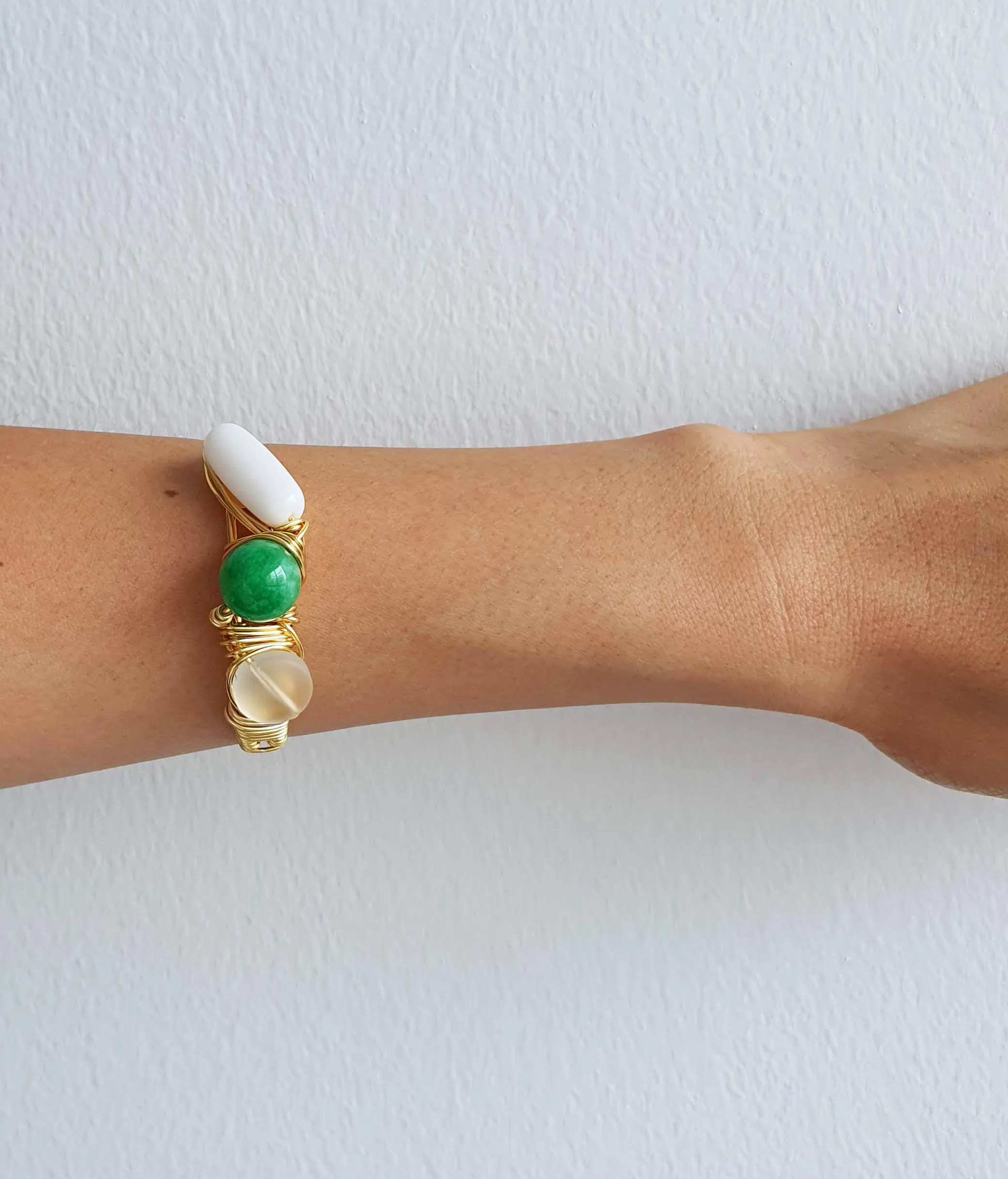 wrapped on high quality Gold plated adjustable cuff bangle in non tarnish wire from the USA.