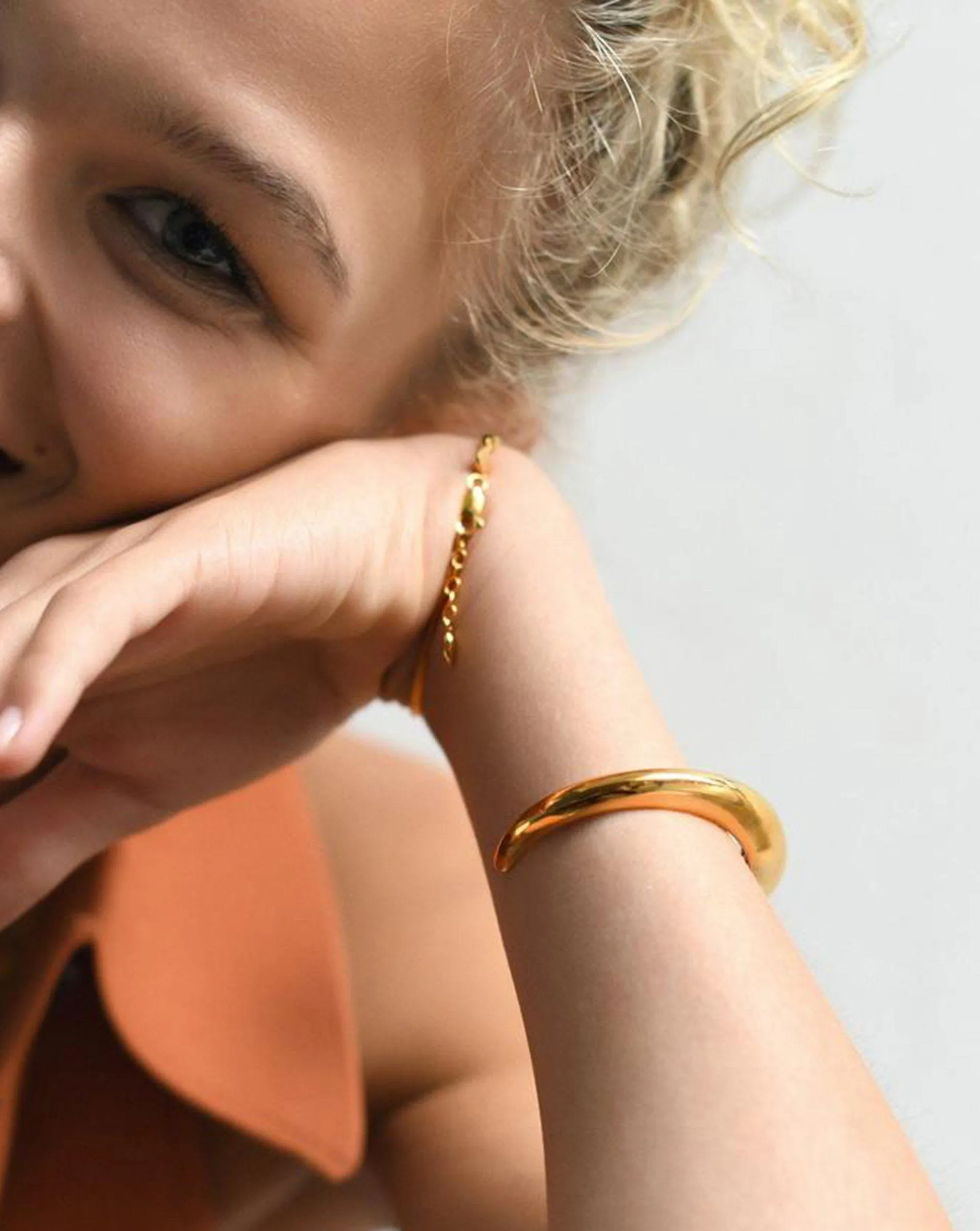 An everyday cuff with a minimalist domed design. Easy to slip on and off, this versatile bracelet features a smooth finish. Wear on its own, or team with other bracelets and cuffs for the ultimate arm stack.