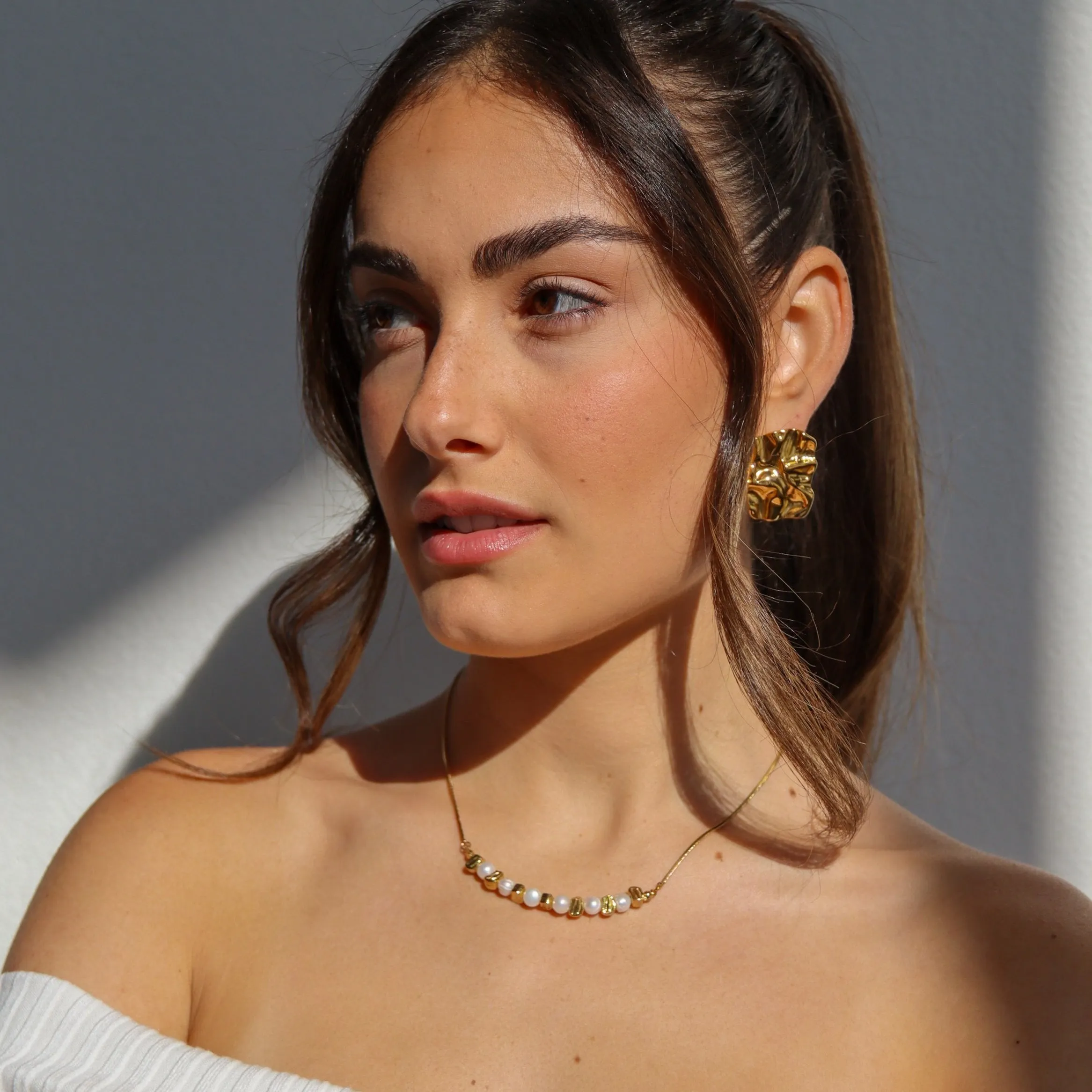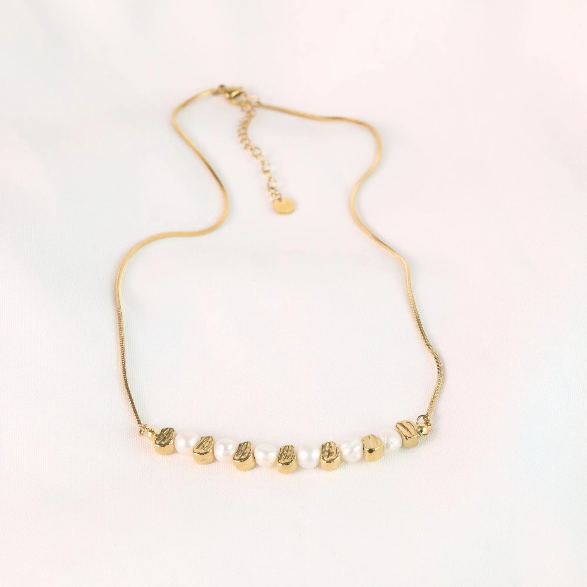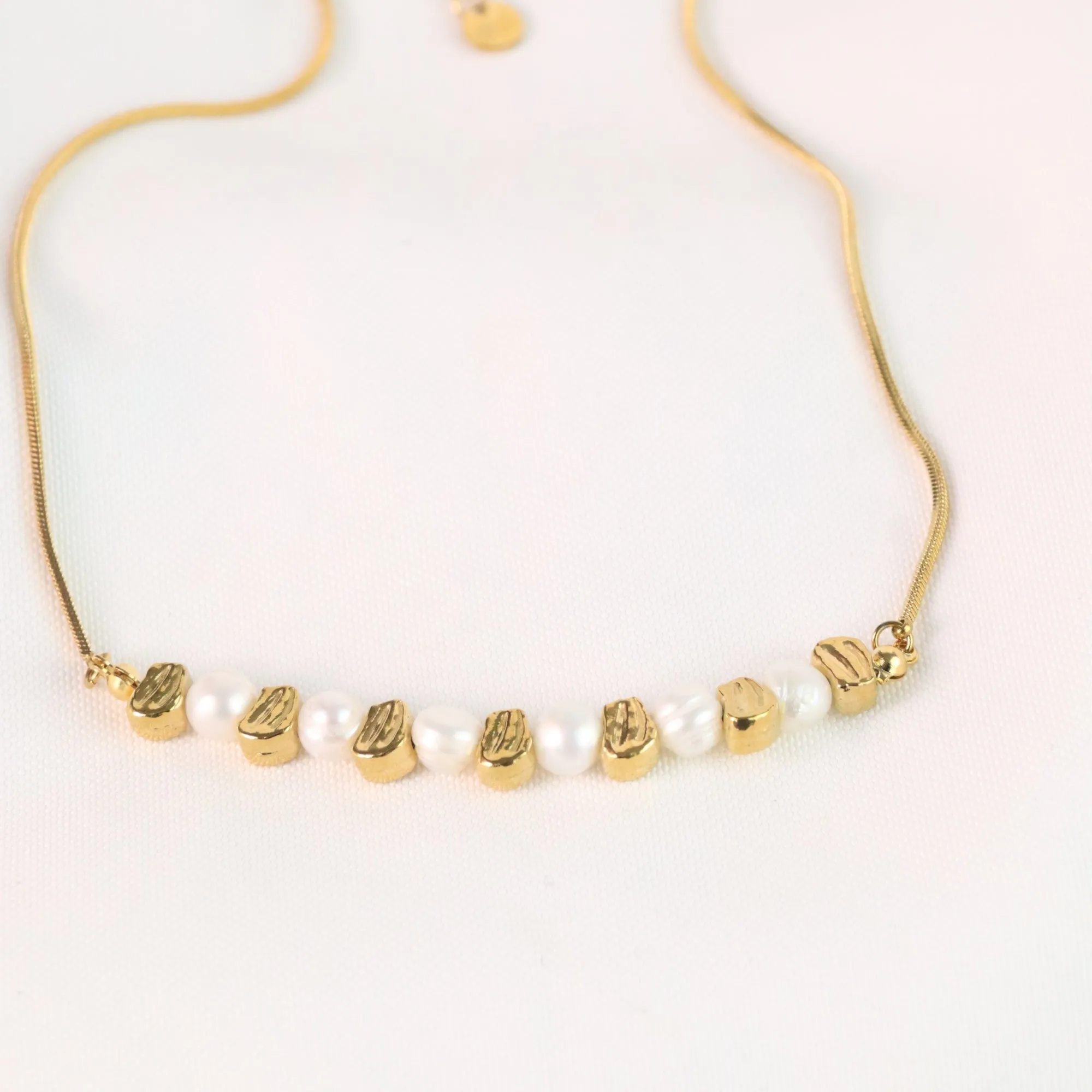 Elevate your style with our Eliana Gold & Freshwater Pearl Necklace! The blend of luxurious materials and elegant design gives this piece a sophisticated charm.