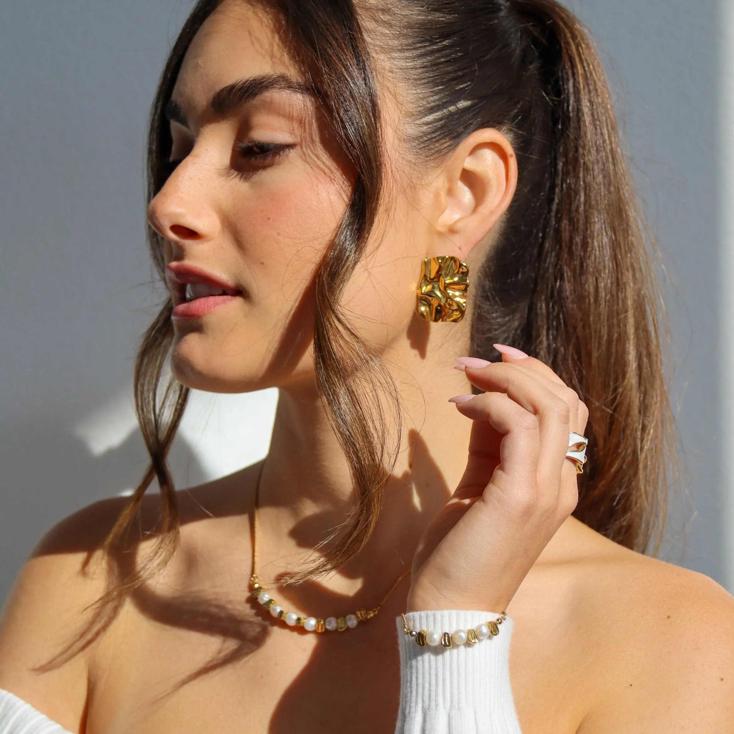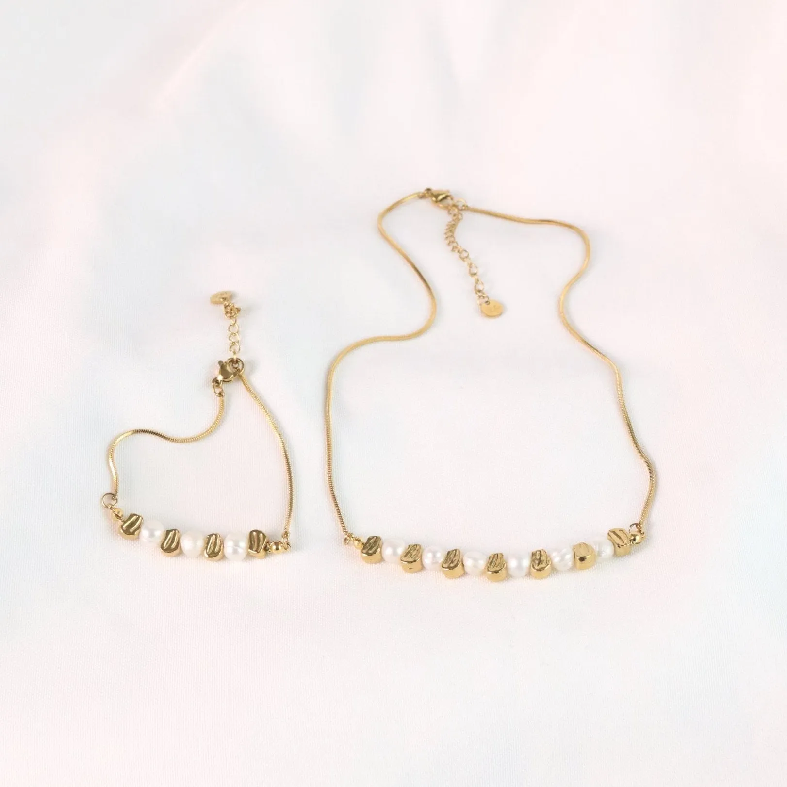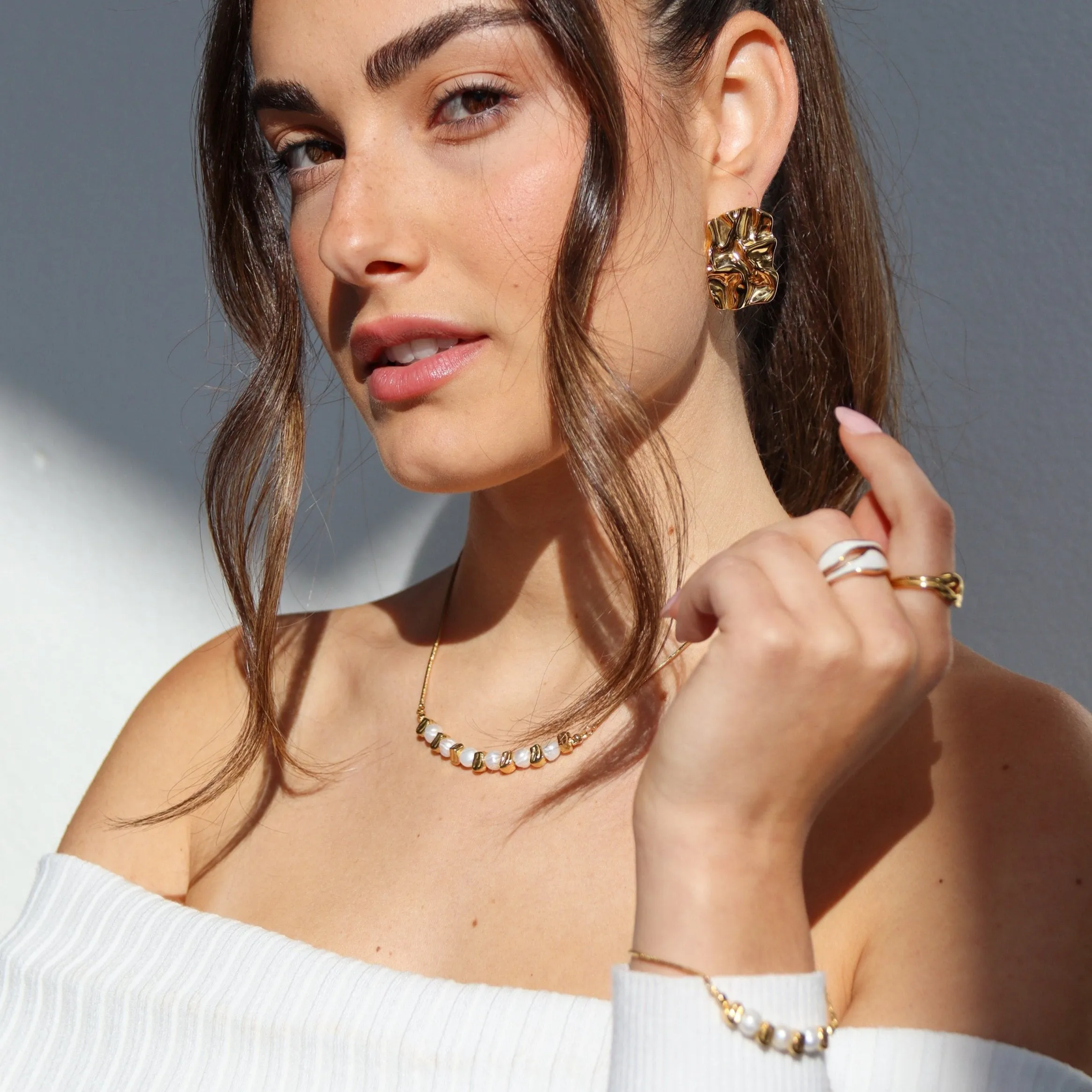 Elevate your style with our Eliana Gold & Freshwater Pearl Necklace! The blend of luxurious materials and elegant design gives this piece a sophisticated charm.