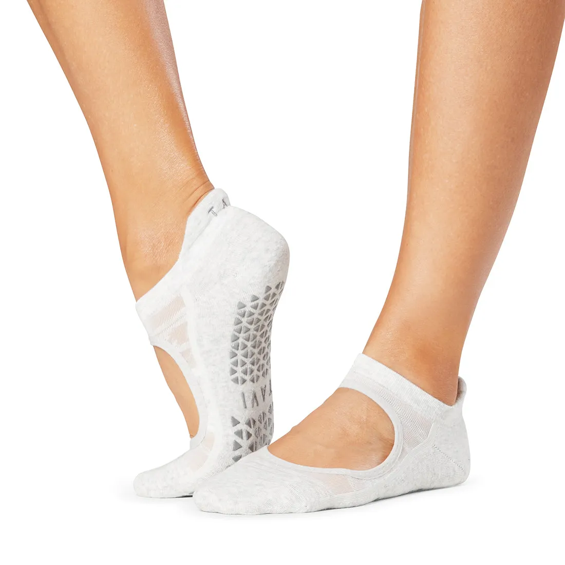 Emma Grip Socks have a less-is-more attitude with her sweet Mary Jane style. Her low design hugs the foot just below the ankle while Tavi’s stella grip sock pattern safely moves you through your barre, Pilates and yoga classes. Express the heart of Tavi with Function that Flows into Fashion.