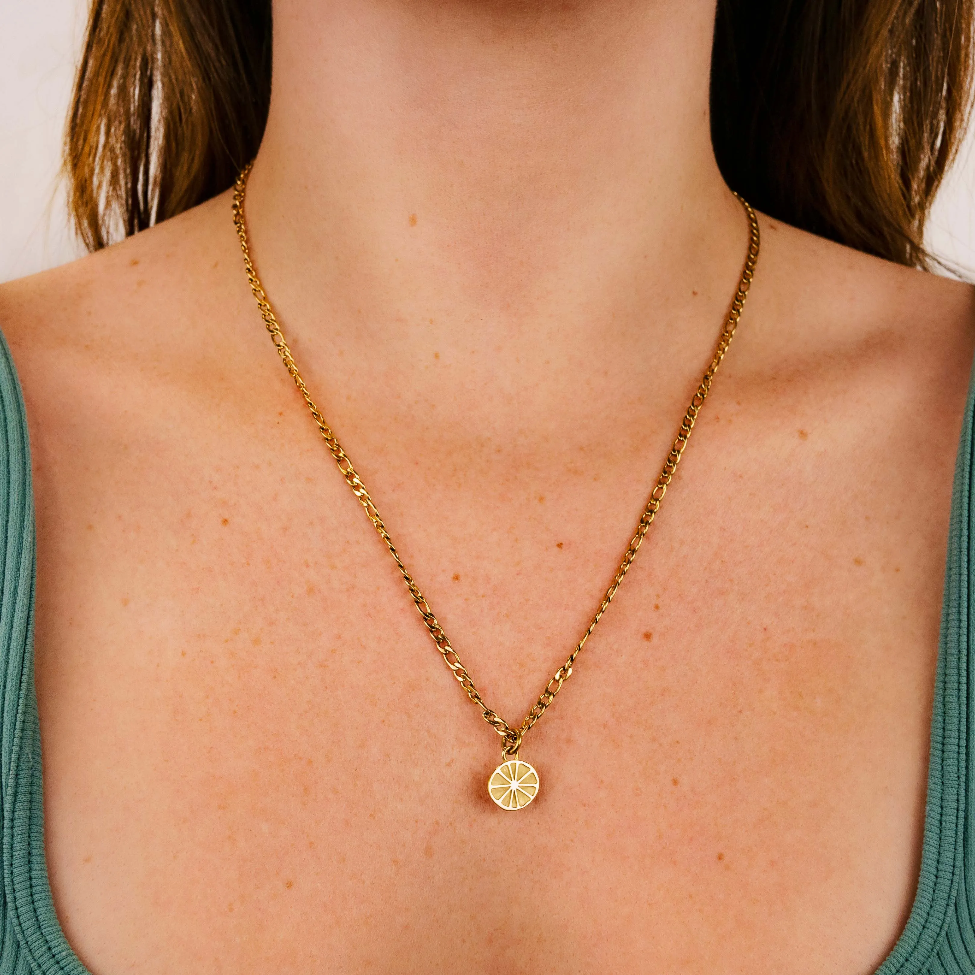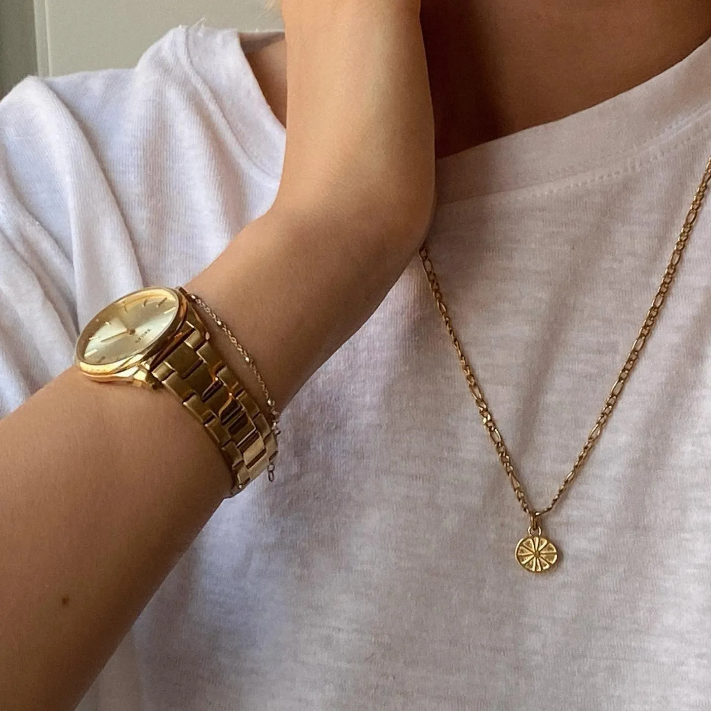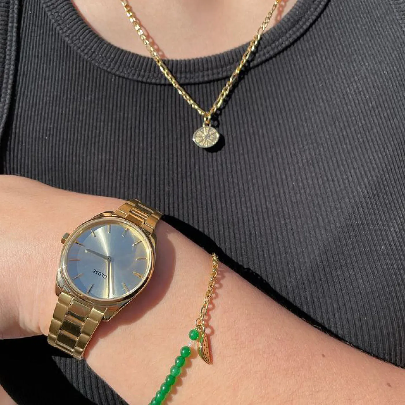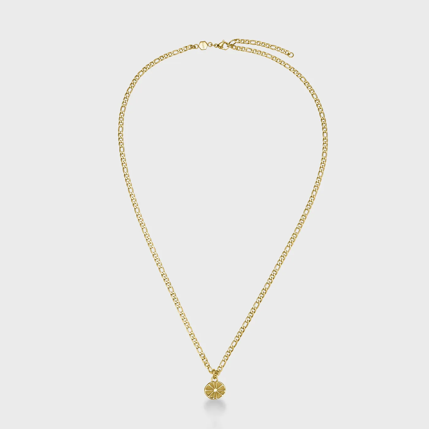 This CLUSE necklace for women gets us in the summer mood. The Essentielle Figaro Chain Citrus Charm Necklace features a gold figaro chain and is finished with a delicate gold citrus charm. Layer with your other CLUSE jewellery for a more-is-more approach or wear solo for a simple yet vibrant look.