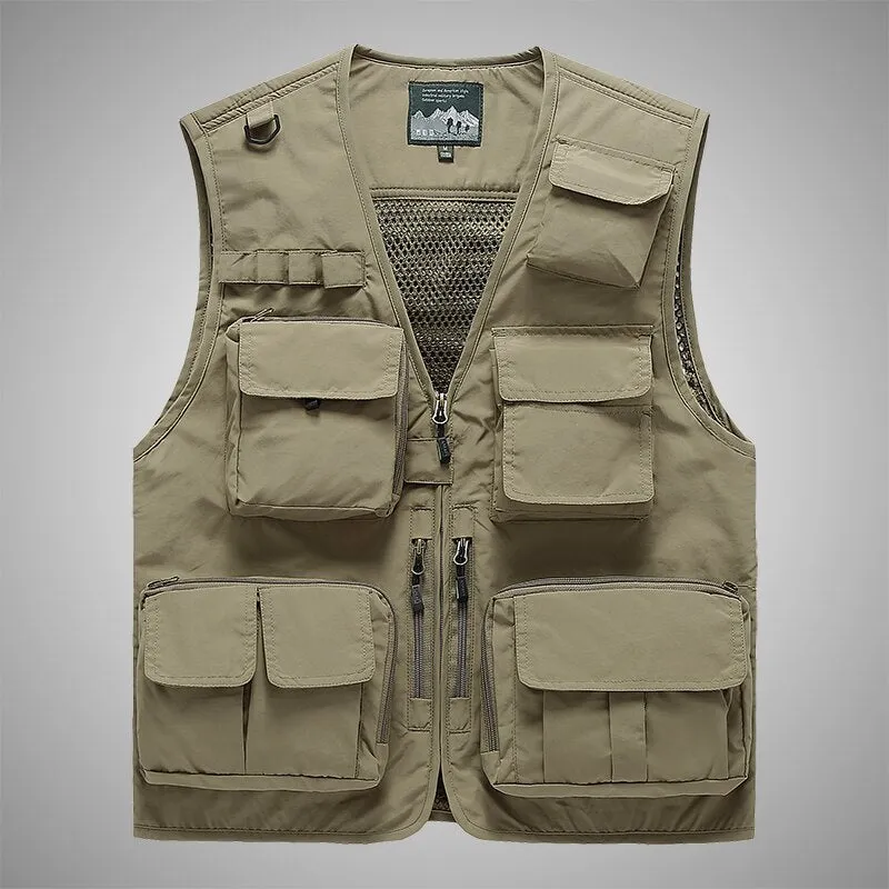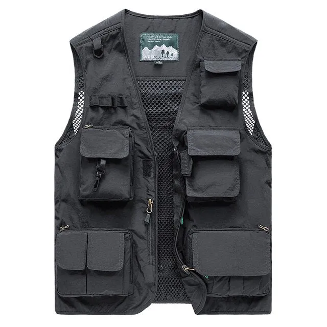 Introducing the FISJH Tactical Vest for Outdoor enthusiasts, the ultimate in functionality and convenience. This vest is designed for outdoor activities, with multiple pockets and compartments to store all of your essentials. The front of the vest features multiple zippered pockets for easy access to your gear, and the back of the vest also has a zippered pocket, perfect for storing larger items or keeping your valuables safe. The vest also includes a foldable pocket, which is perfect for storing and carrying gear. Made with a durable and water-resistant material, this vest is built to withstand the rigors of outdoor activities. The sleeveless design allows for maximum mobility and comfort, making it perfect for hot summer days or outdoor activities. Available in multiple colors.