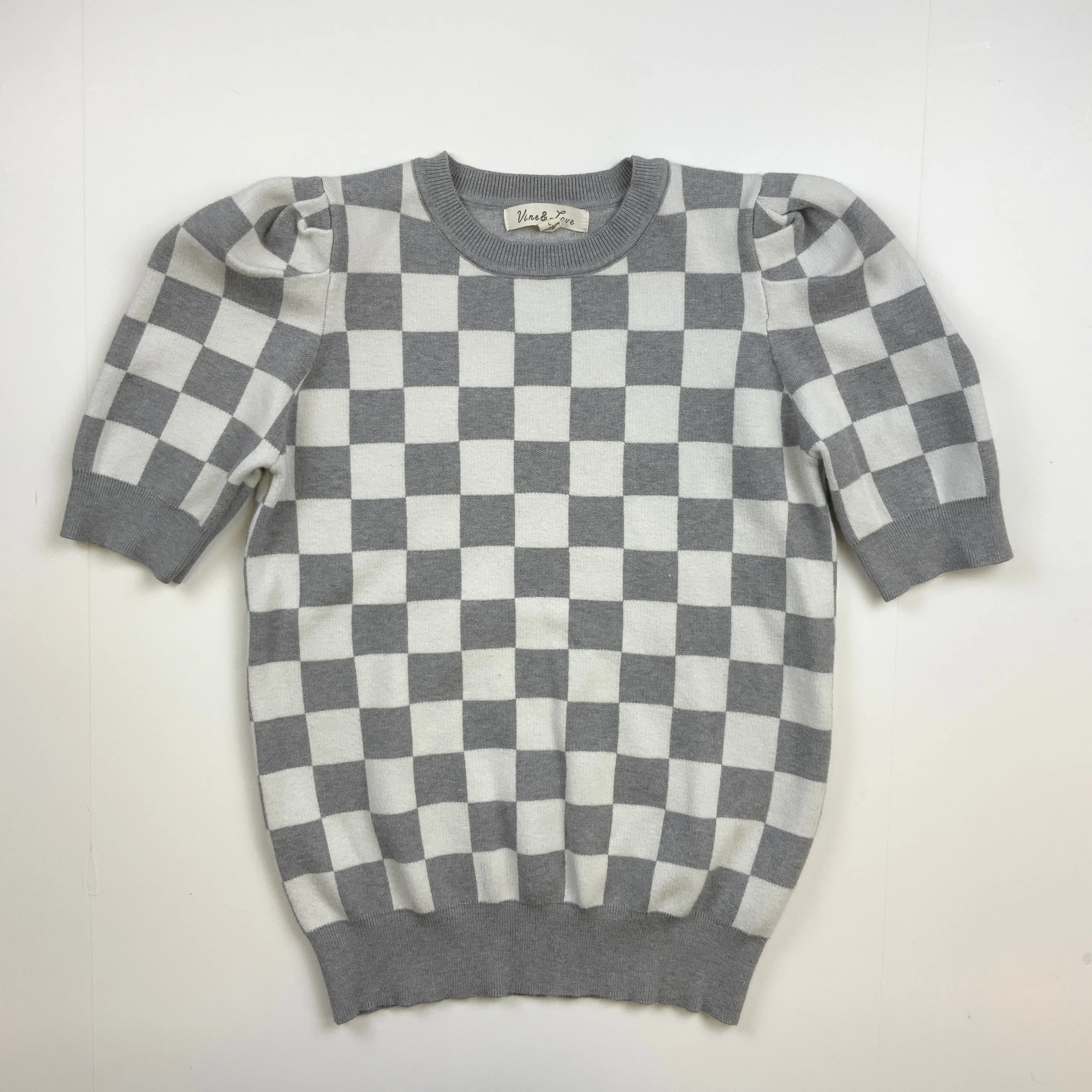 Grey White Sweater Short Sleeve Clothes Mentor, Size L