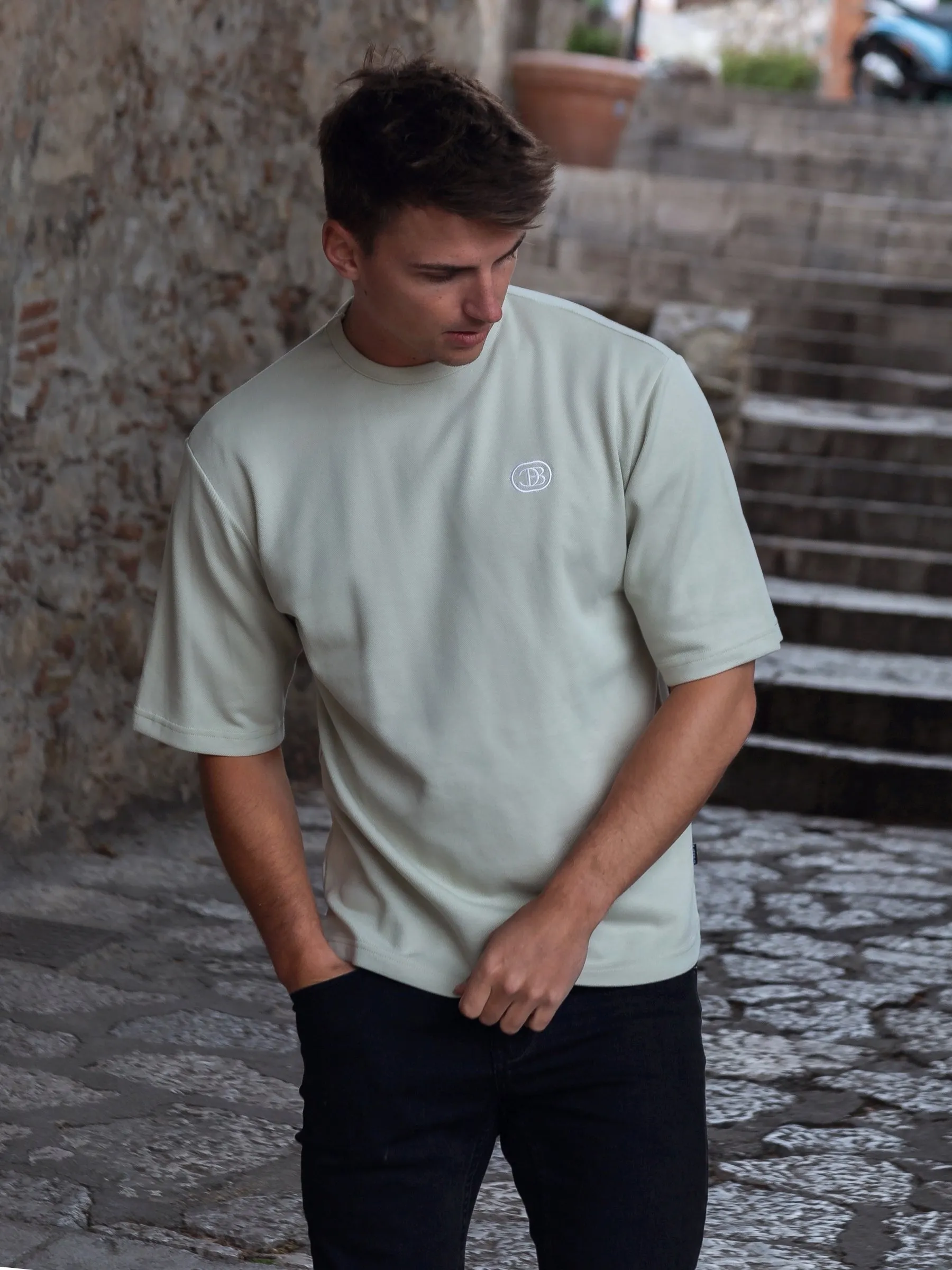 The Icon Oversized T-Shirt in light blue is a minimalist T-shirt crafted from a super-soft cotton blend with an oversized fit. It features an embroidered Blakely Initial logo on the front and is completed with a crew neck design.