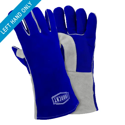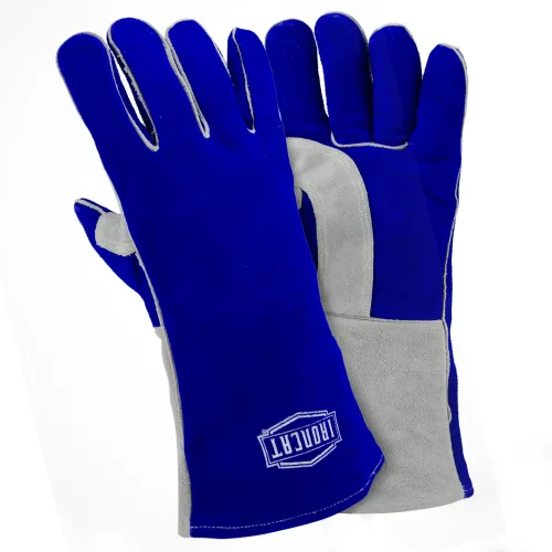 Premium side split cowhide provides the most durable protection in high heat welding conditions. 14" length protects hands and arms from sparks and spatter. Additional layer of foam on palm and back of hand provides added heat insulation. Double reinforced thumb combines thumb strap with an added patch on thumb saddle to protect high stress area.