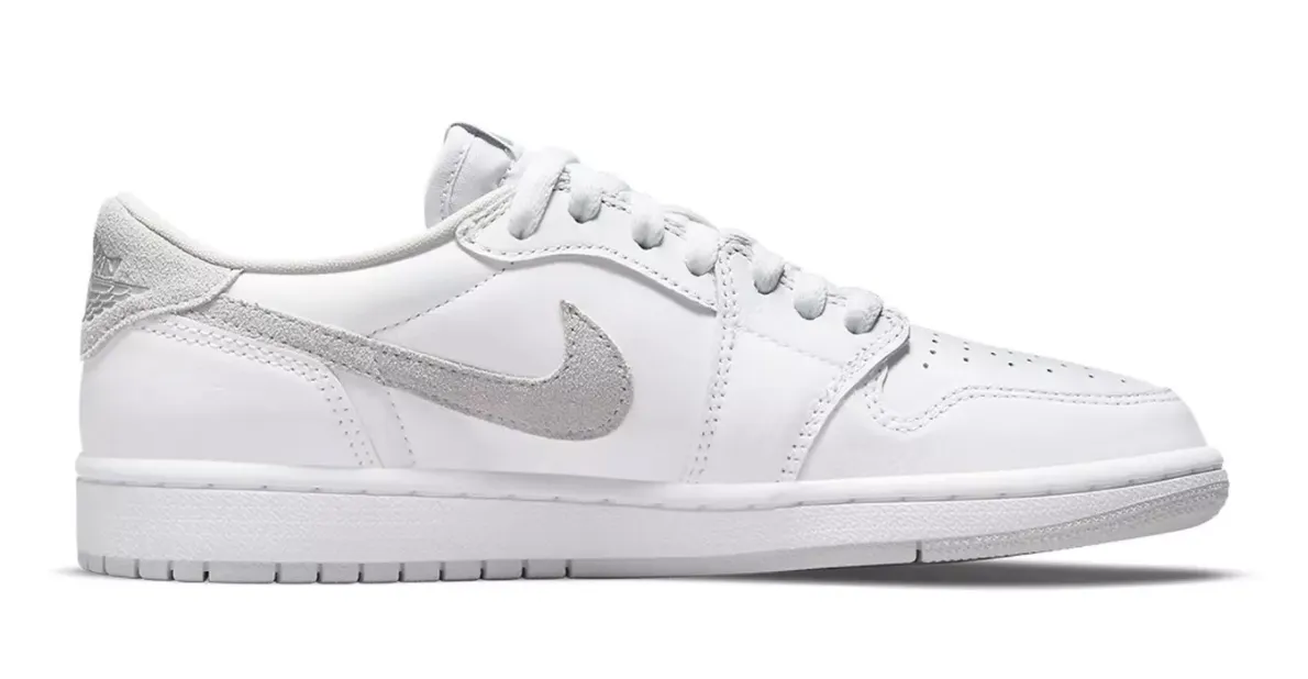 Coming in a clean neutral grey, white and pale-green colourway, it’s a subtly-hued pair that will no doubt be an absolute pleasure to work into any outfit. Nike’s signature Swoosh logo is present across the lateral and medial sides, while the OG Nike Air tab is present at the tongue, instead of the Jumpman seen on more recent releases. Other classic details such as the wings logo and perforated toe box also make an appearance for a familiar feel.