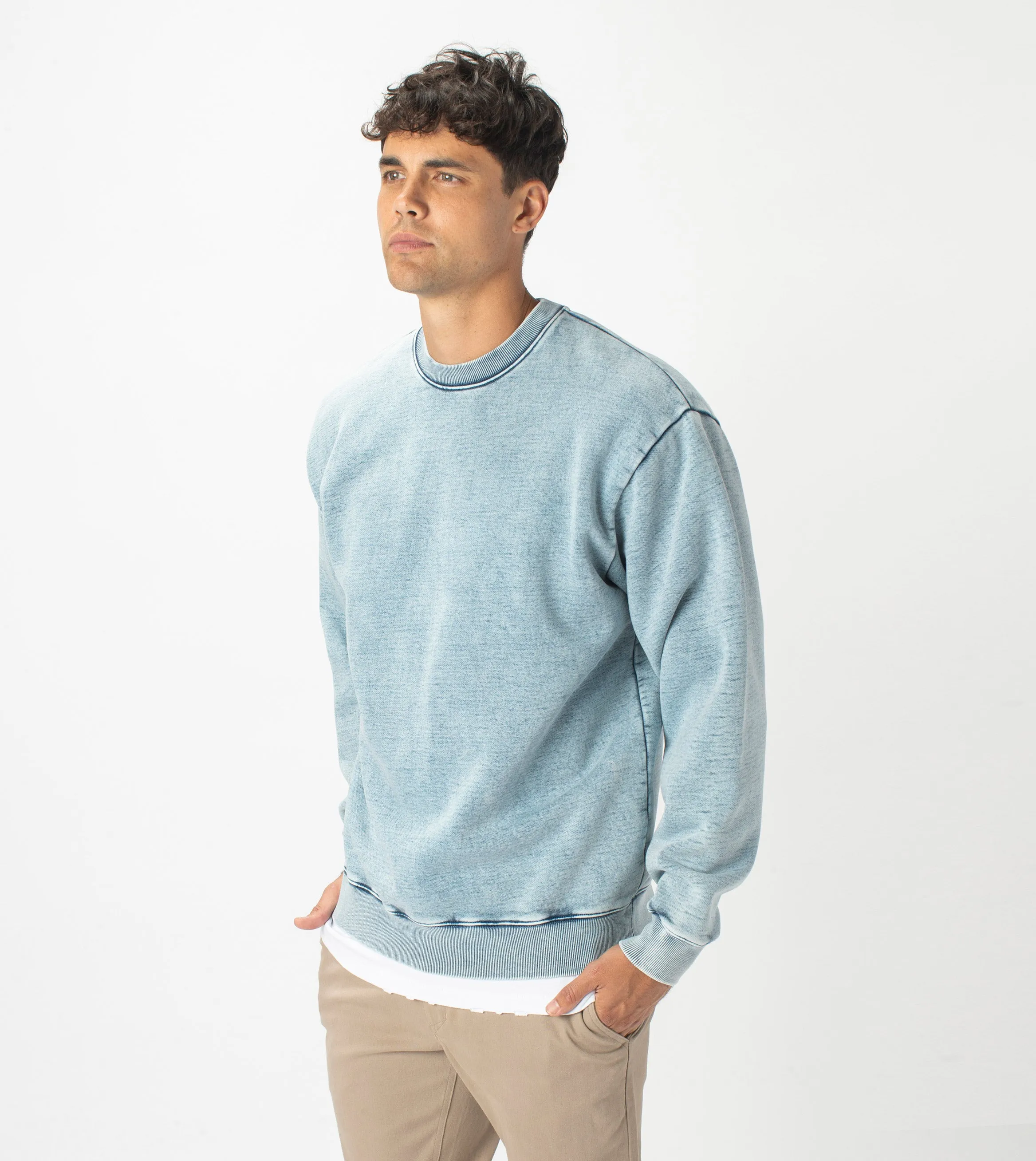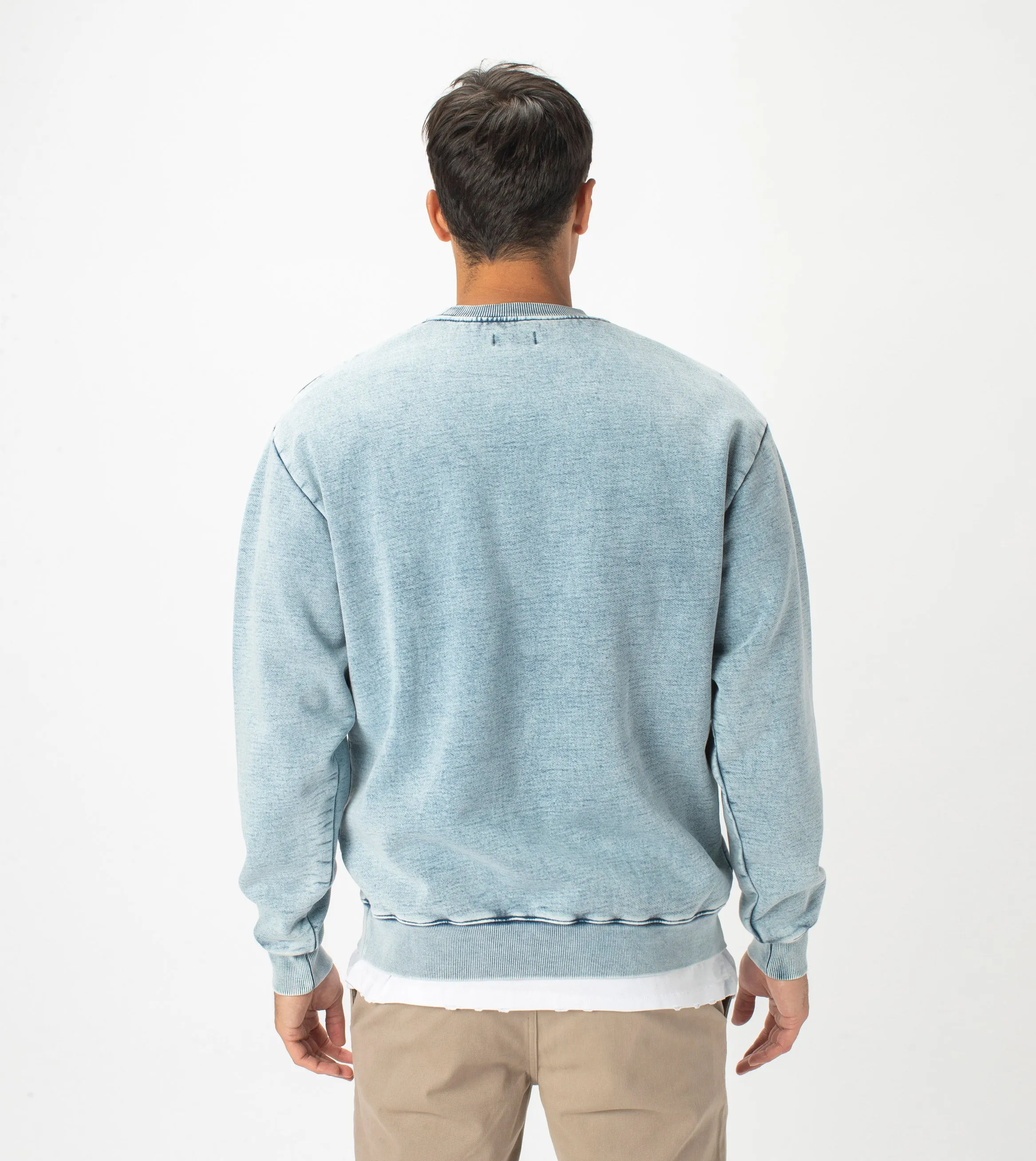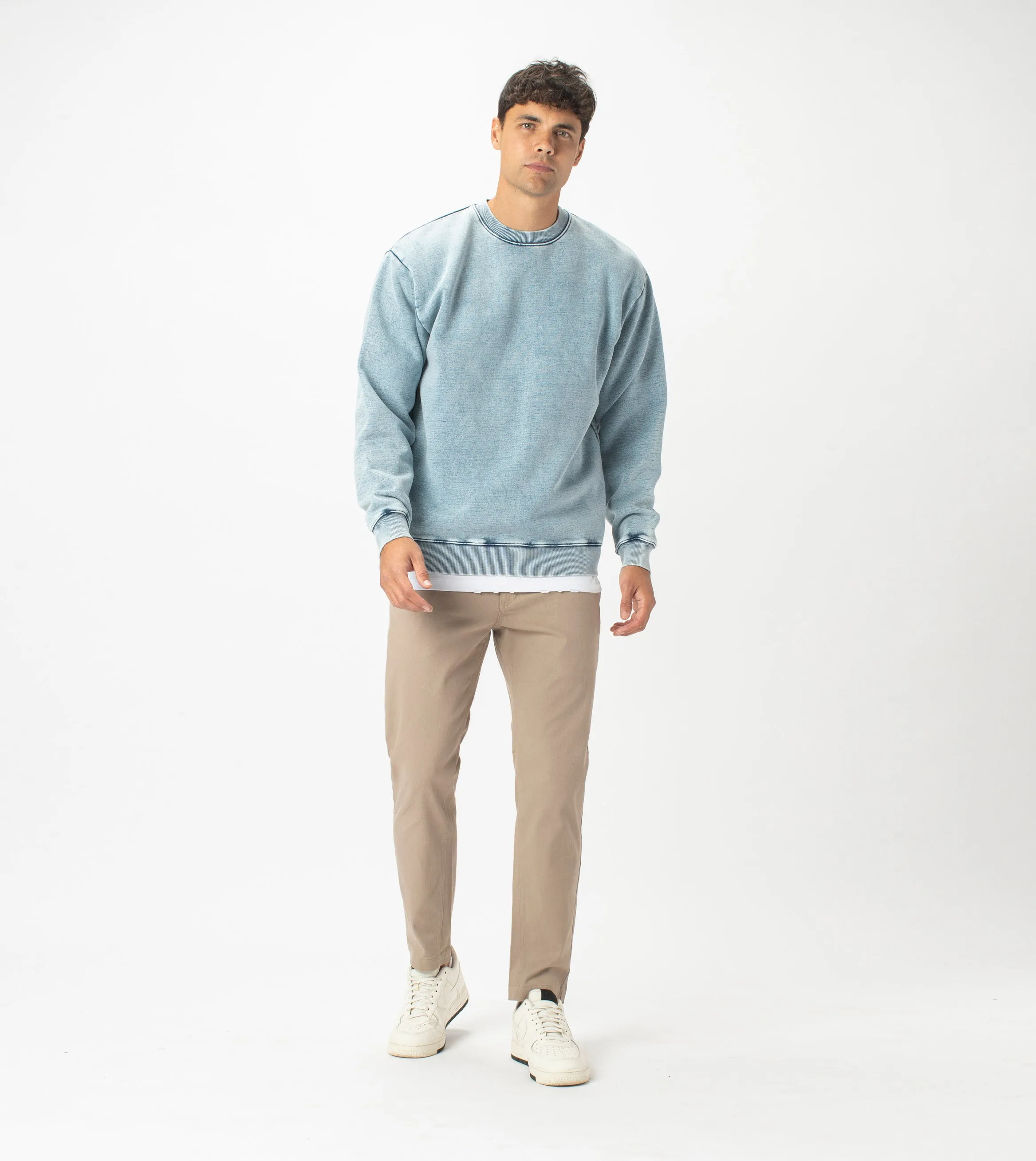 The ZANEROBE Lowgo Crew Sweat in Salt Blue - Signature style with fleece fabrication. We wear with our Classic .