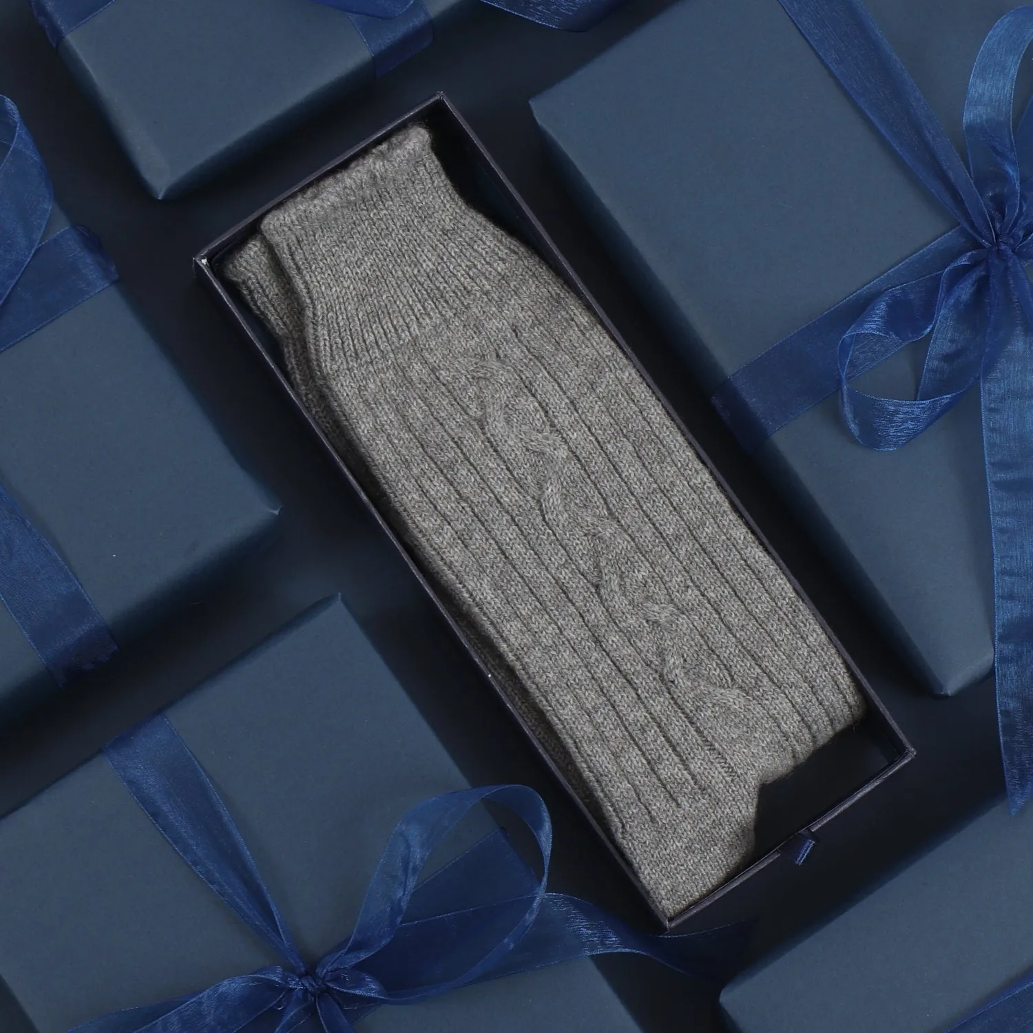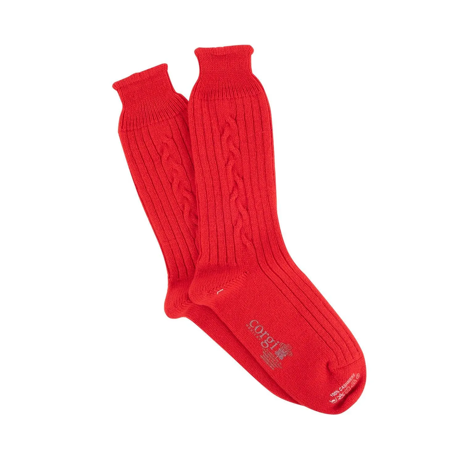 Revel in unparalleled luxury with our finest quality cable cashmere socks: hand-knitted in a single row cable and ribbed design, crafted by our team of highly proficient artisans since 1892. Using time-honoured handwritten pattern instructions, our factory in South Wales will carefully create these one-of-a-kind socks, just for you. Please allow up to 3 weeks for production, but contact us within 48 hours to let us know if you need them urgently. Plus, you have an impressive 64 colours to choose from - a perfect gift for someone special or a well-deserved treat for you.
