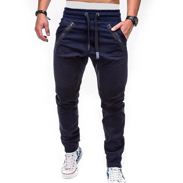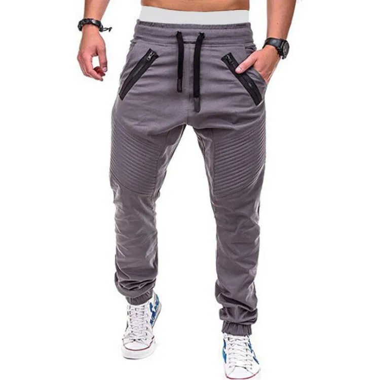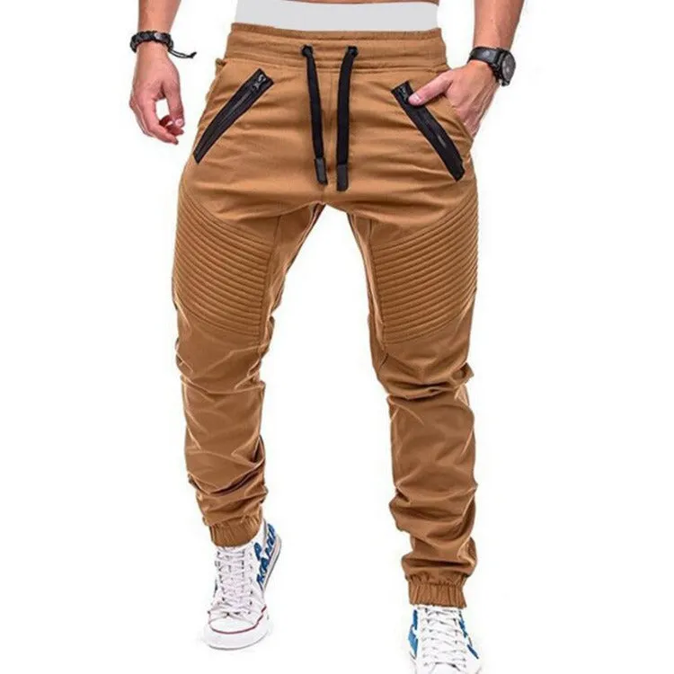 These Men's Jogging Pants are designed for outdoor sports and feature a drawstring waist for a comfortable fit. The solid color and zipper pocket provide a sleek and functional look, perfect for any active lifestyle. Made from high-quality materials, these pants offer durability and style in one.