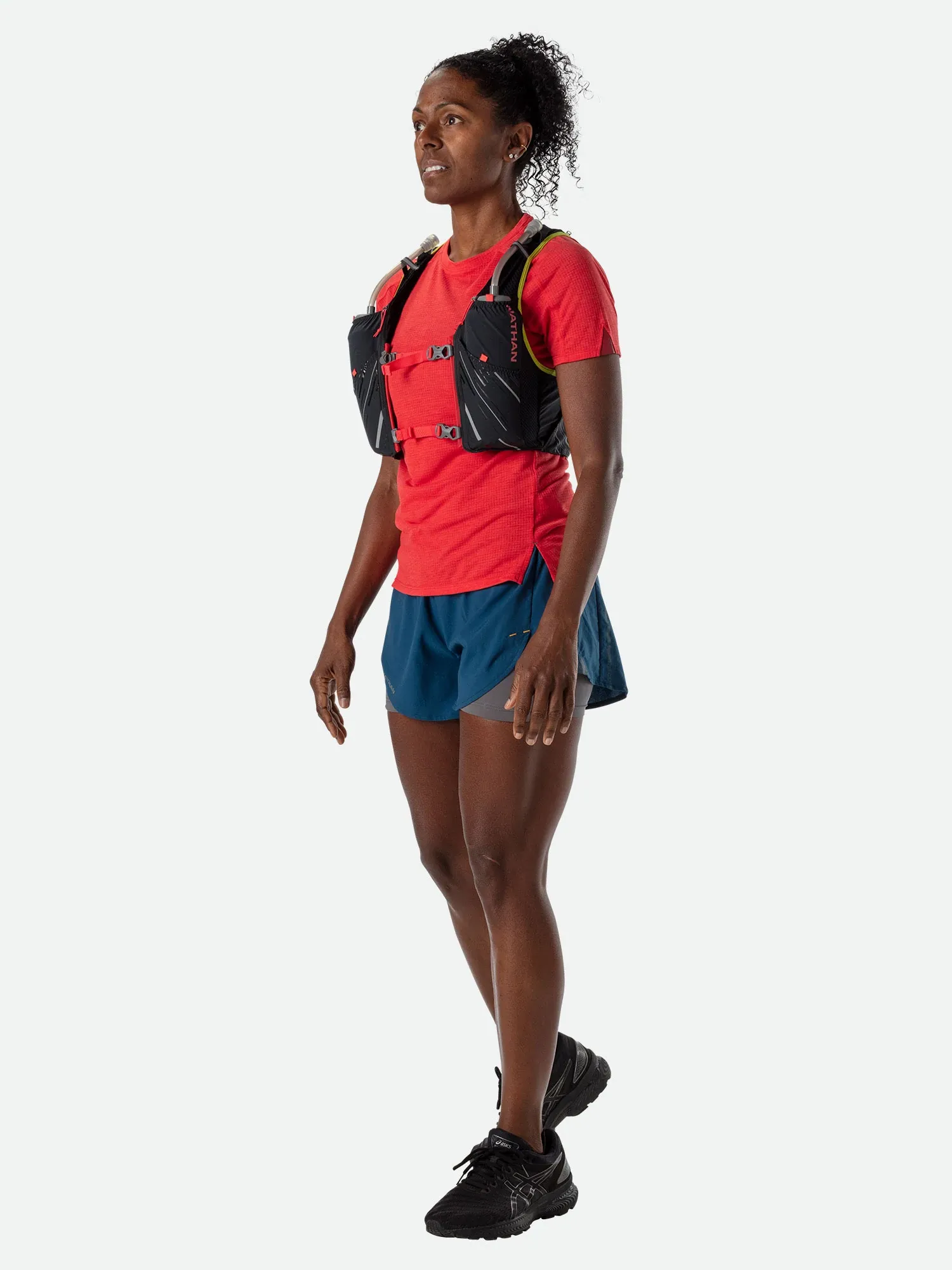 Designed to keep you moving in total comfort, this vest is lightweight, breathable and features tapered back panels to keep the moisture out. Its new enhanced shape boasts a slightly longer back for efficient, dispersed capacity. With just the right chafe-free fit and form, it's the perfect race day vest!