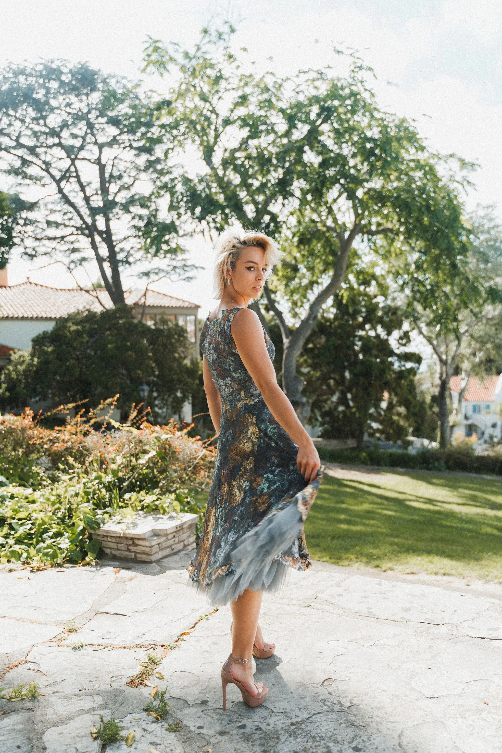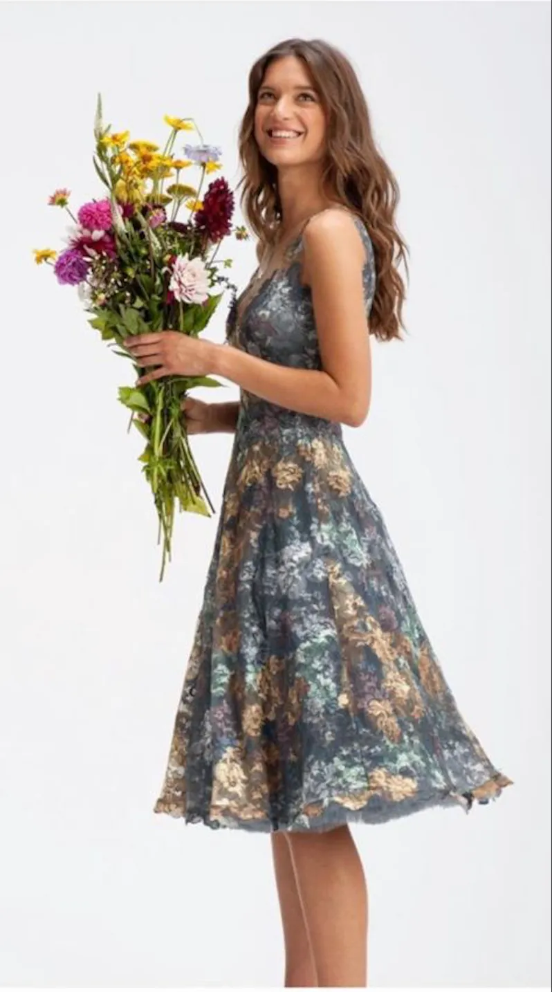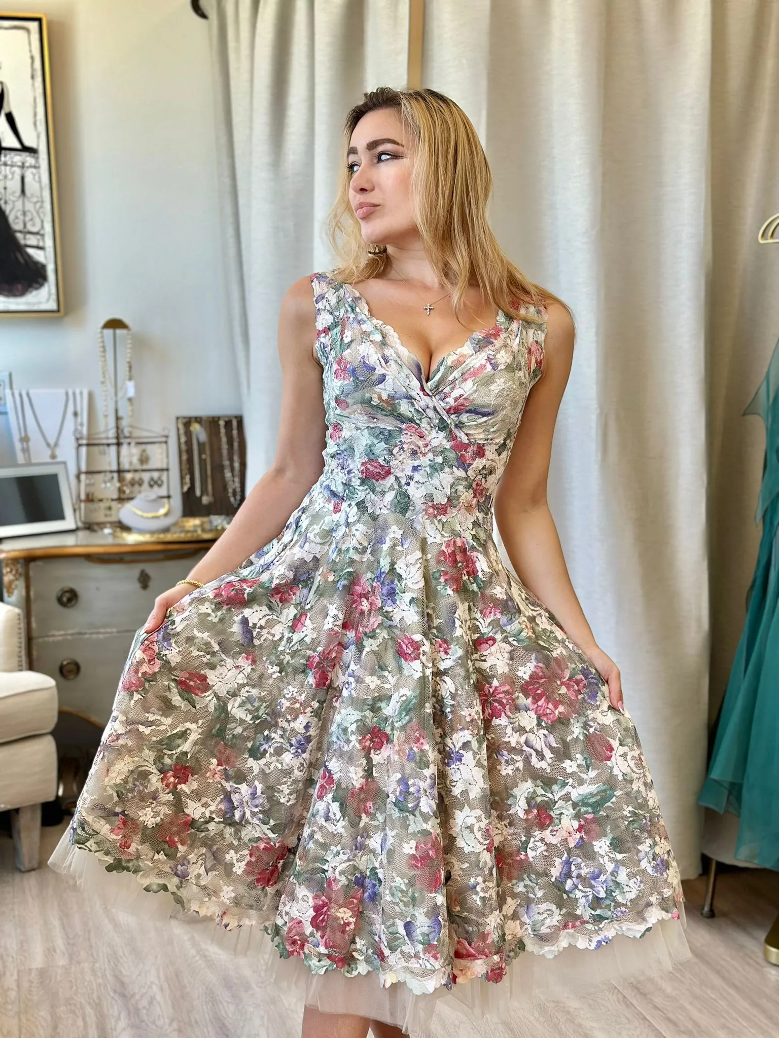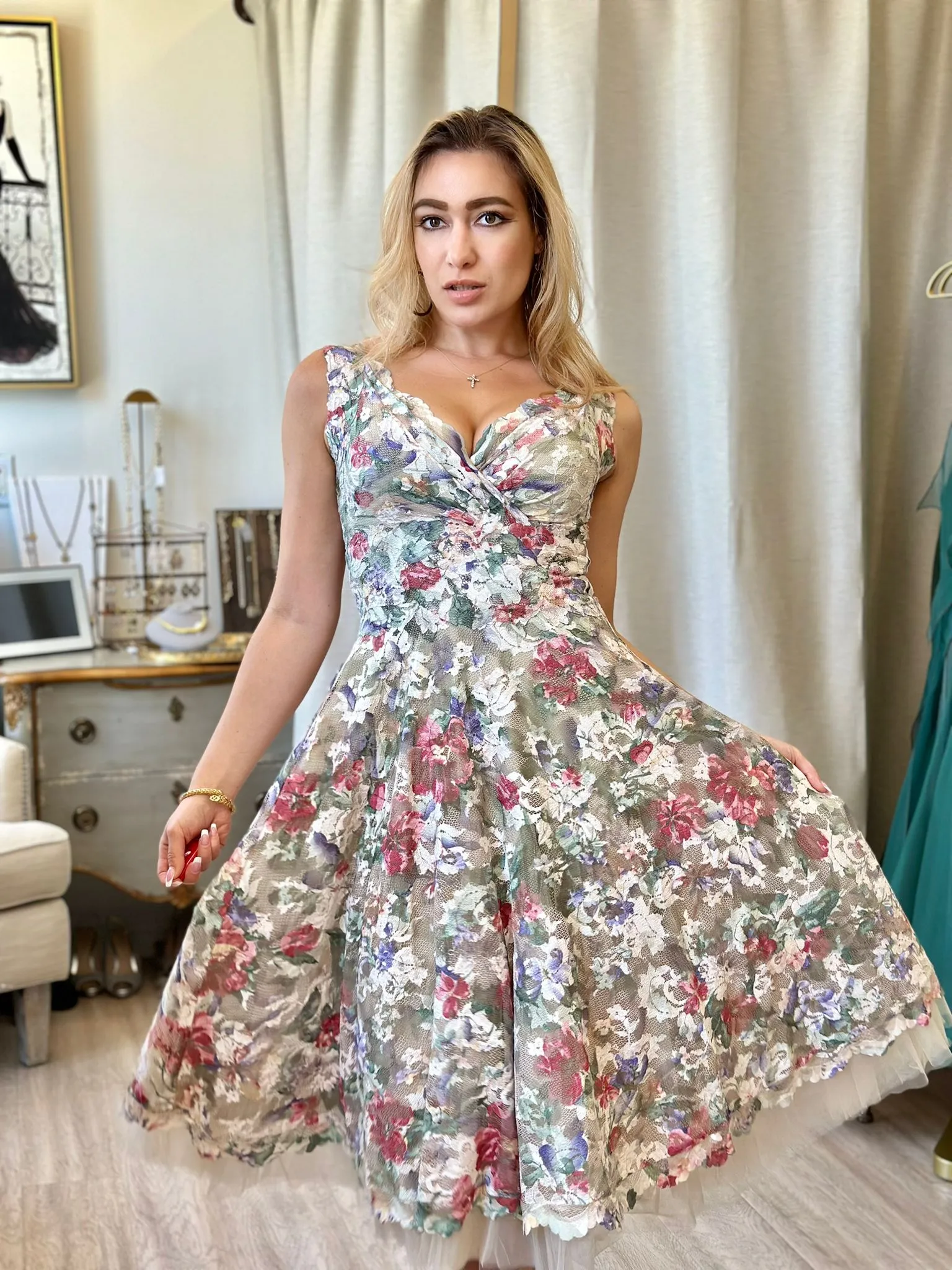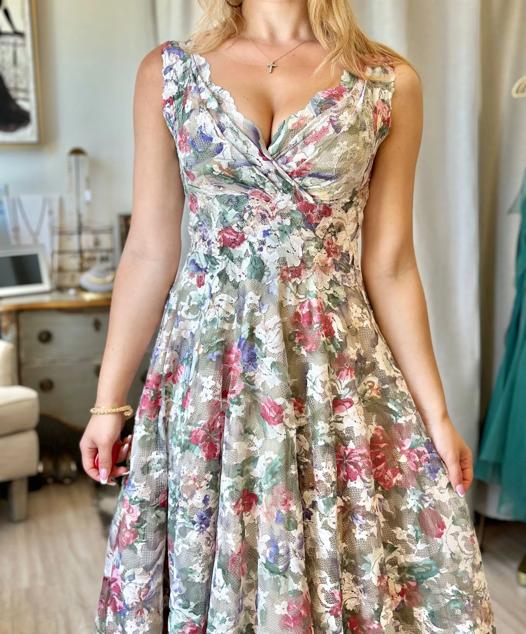 Lace Grace Kelly Dress. This is What I Call A Dream Dress! The Fit Is Outstanding, Regardless Of Size Or Body Type. Fitted On Bodice Area, Then Gradually Has Different Layers Of Tulle Under, That Go From Higher To Lower, Which Avoids Adding Volume To The Skirt, But Instead It has Just Enough Weight and Volume to Have it Perform Beautifully As You Walk, Stroll, Dance Or Just Stand. This is a Timeless, Magical, Gorgeous Dress! It's a Blend Of Sophisticated, Playful, Ultra Feminine, Yet Not Girly. Perfect For... Well... Whatever you want really, from a Nice Dinner, to a Cocktail Party, Even Black Tie Event, The Opera, Garden Weddings, Fundraising Events, Etc. You Will Turn Heads Wearing This Dress, But People Will Love You. It is also reversible!Turn the dress around, and you are left with an elegant neckline in the front and a deep v in the back.