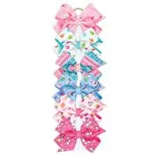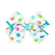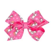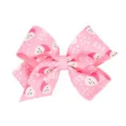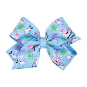 Who says Christmas needs to be red and green? These cute medium and king overlay hair bows featuring smiling Santa, bright ornaments and bow-topped packages will show off her trendy style!