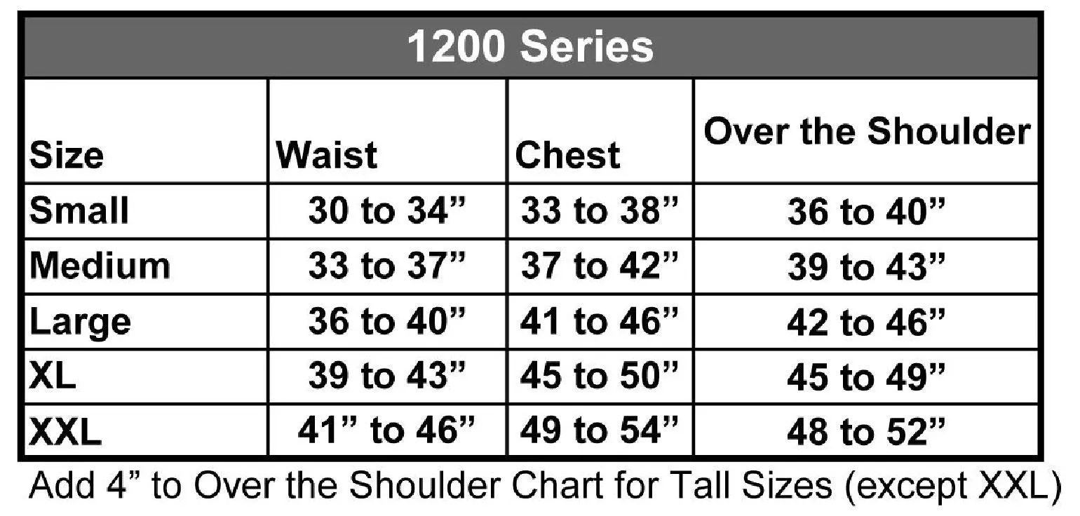 (Add 4" to "Over the Shoulder" for X-Large Tall)
