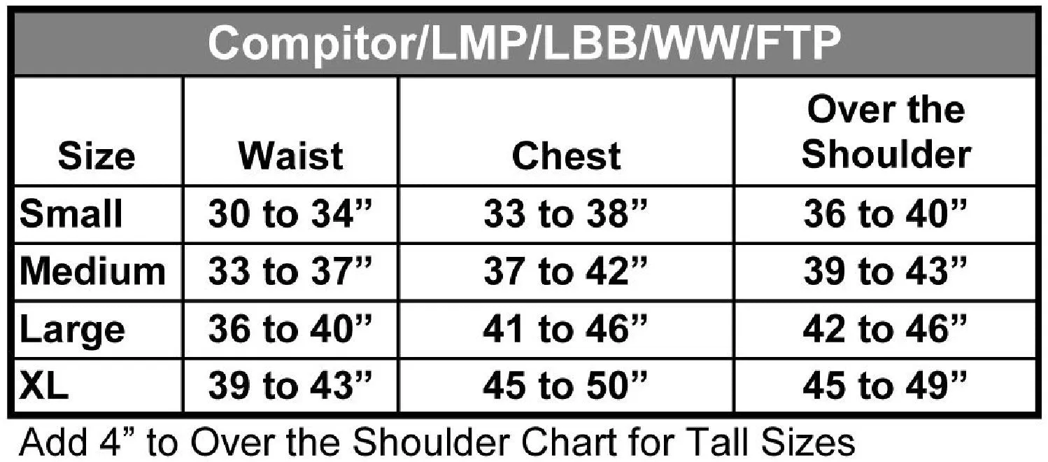 (Add 4" to "Over the Shoulder" for Tall sizes)