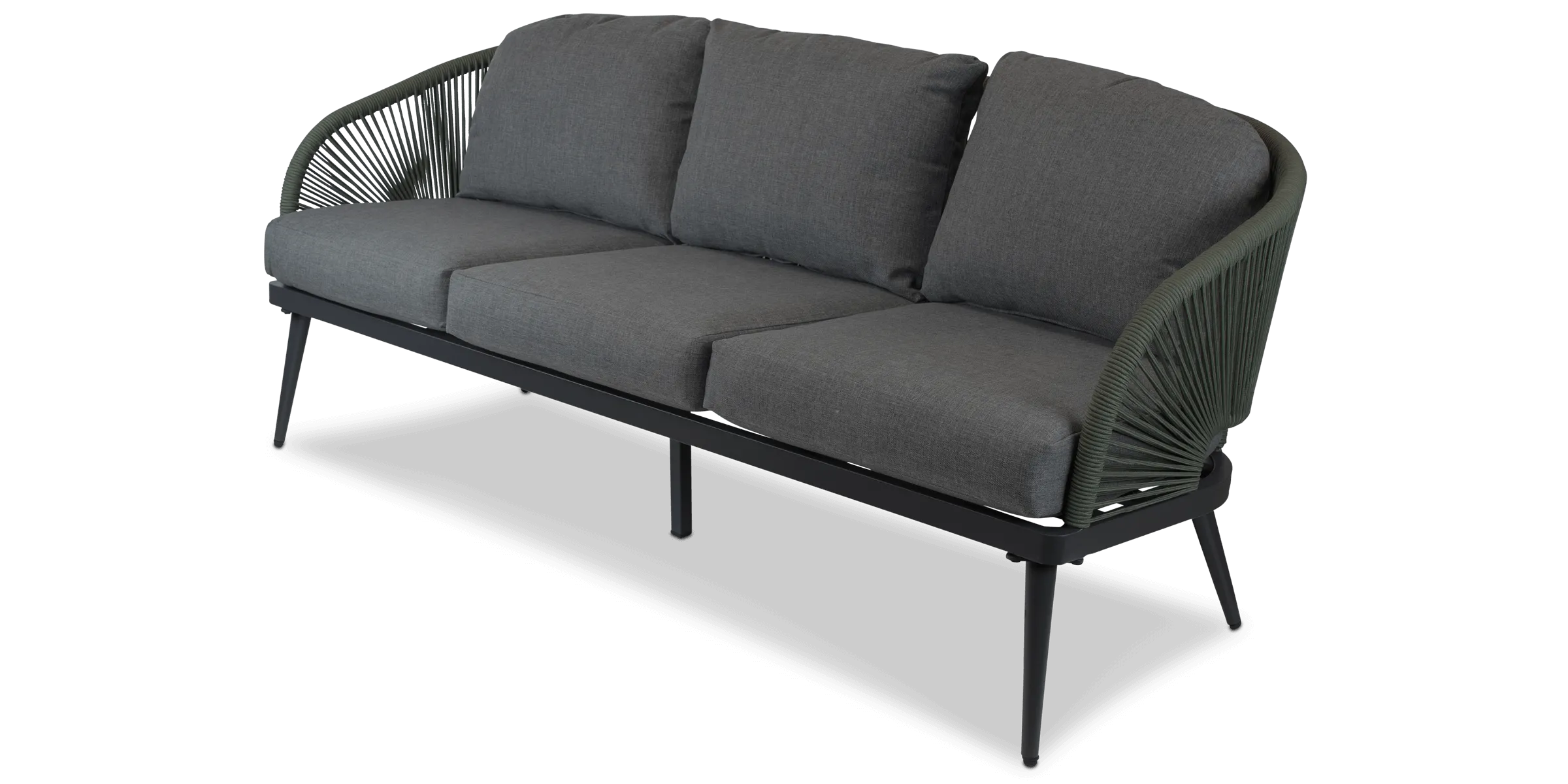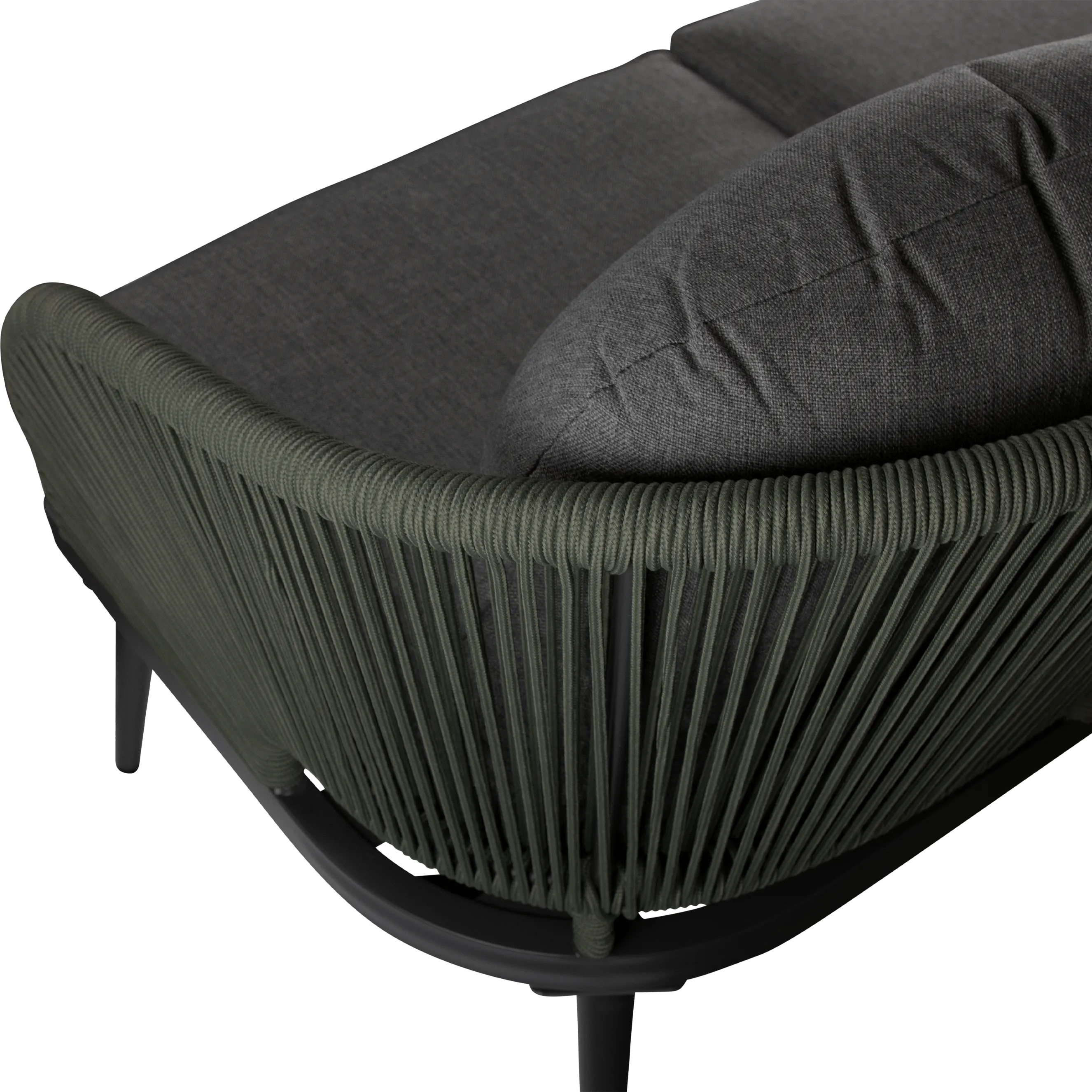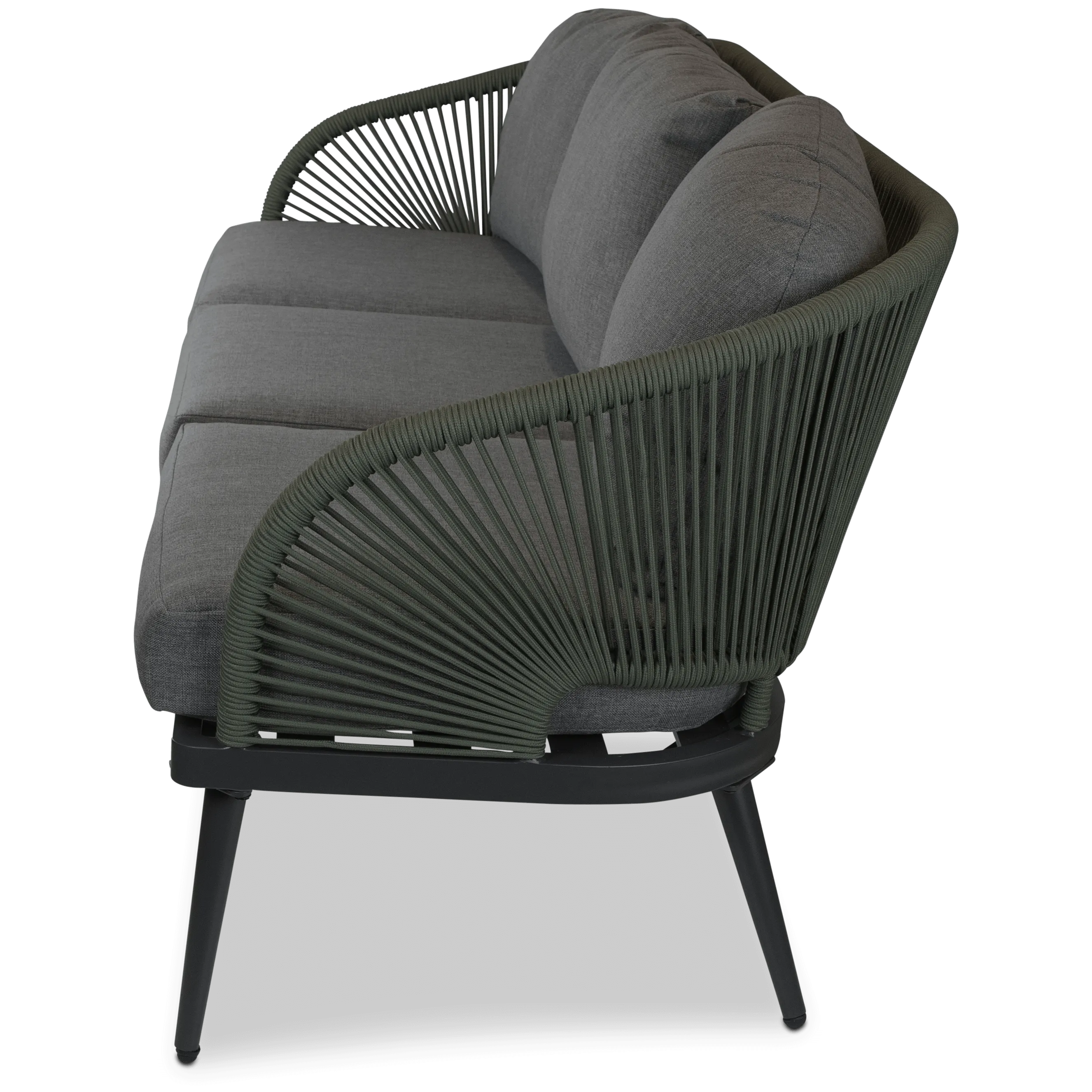 Crafted with meticulous attention to detail, the Santa Monica Collection boasts a contemporary curved design that seamlessly blends form and function. The sleek gunmetal aluminium frames exude sophistication while ensuring durability that withstands the test of time and the elements. The true centrepiece of this collection is the trending Olive influenced Bonsai Green Olefin Rope, meticulously woven to create an intricate yet inviting pattern that adds depth and character to each piece.