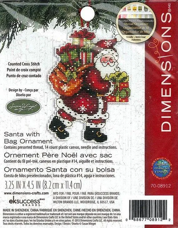 The Santa with Bag Ornament Counted Cross Stitch Kit by Dimensions is a delightful holiday project that brings classic Christmas cheer to your home. This charming ornament features Santa Claus in his traditional red suit, carrying a large, overflowing bag of presents, ready to spread joy and holiday spirit. Whether you're an experienced cross-stitch enthusiast or just getting started, this kit offers an enjoyable crafting experience and a beautiful decoration for your holiday festivities.