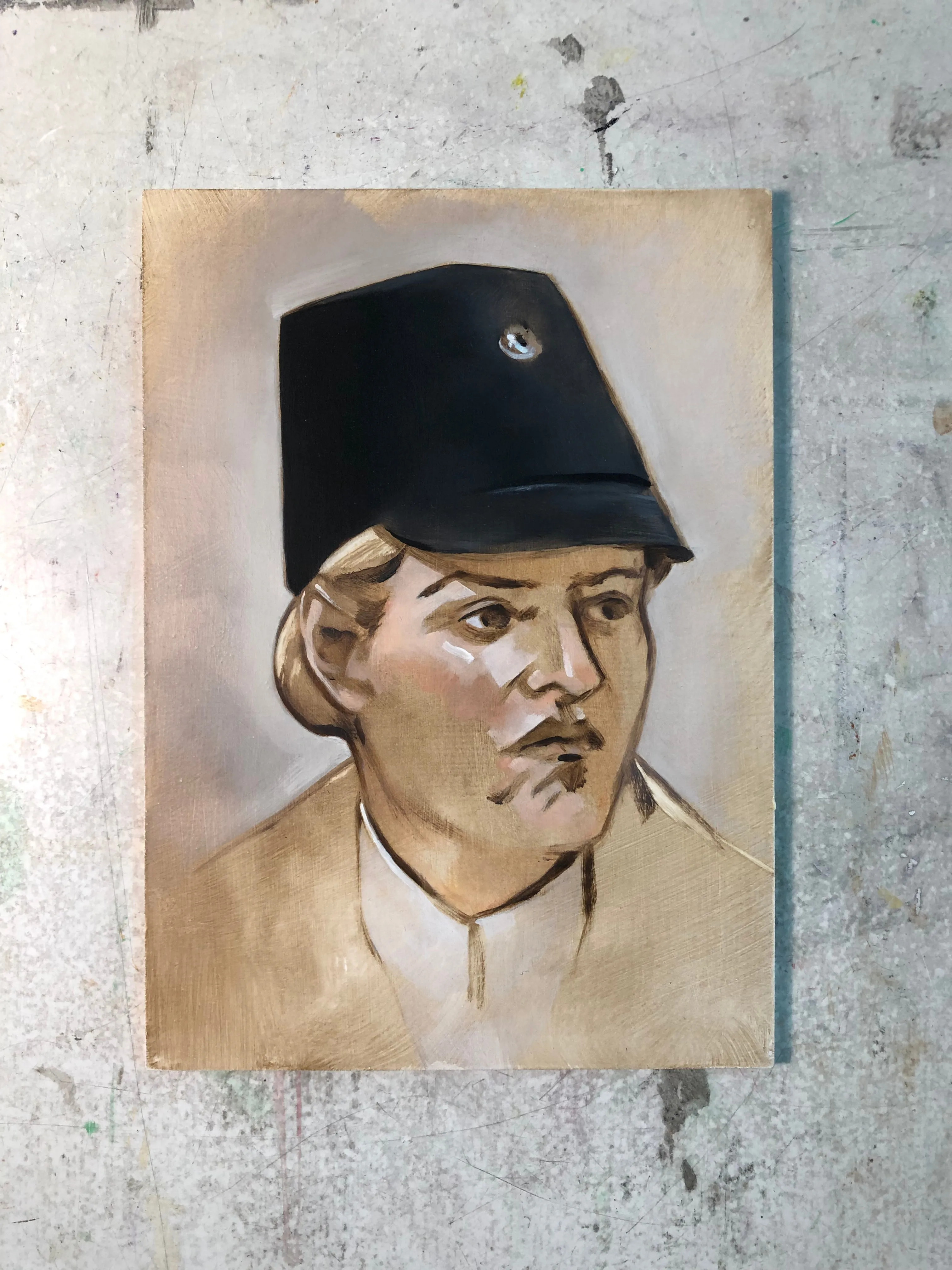 Measures 5" x 7" on uncradled masonite (has a little notch on the back for easy hanging if for some reason you don't want to spring for a frame). Hand-signed in pencil on the reverse. If you have any questions about buying an original piece, email [email protected].