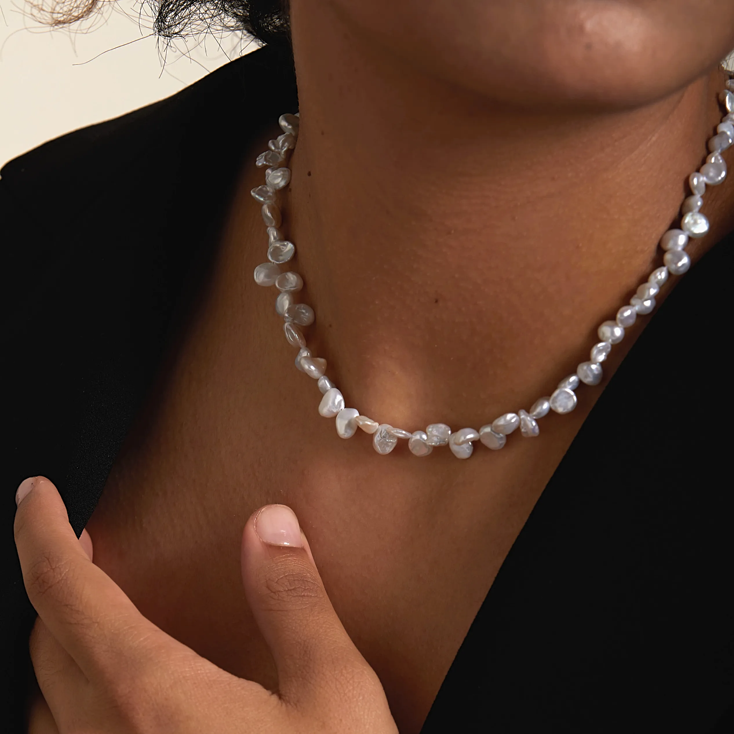 Immerse yourself in the beauty of summer romance with our enchanting necklace. Composed of brilliant freshwater pearls, each piece captures the serenity of white summer clouds. With sizes ranging from 3-7mm, these pearls exude a radiant lustre that echoes the sun-kissed moments of a perfect summer day. Set in exquisite 925 silver, the necklace evokes an alluring charm that seamlessly pairs with any attire. The Summer Romance Necklace from Herself Jewelry is more than just a piece of adornment - it's a remembrance of warm love stories and the vibrant energy of summer days. Experience the allure of a Summer Romance today.