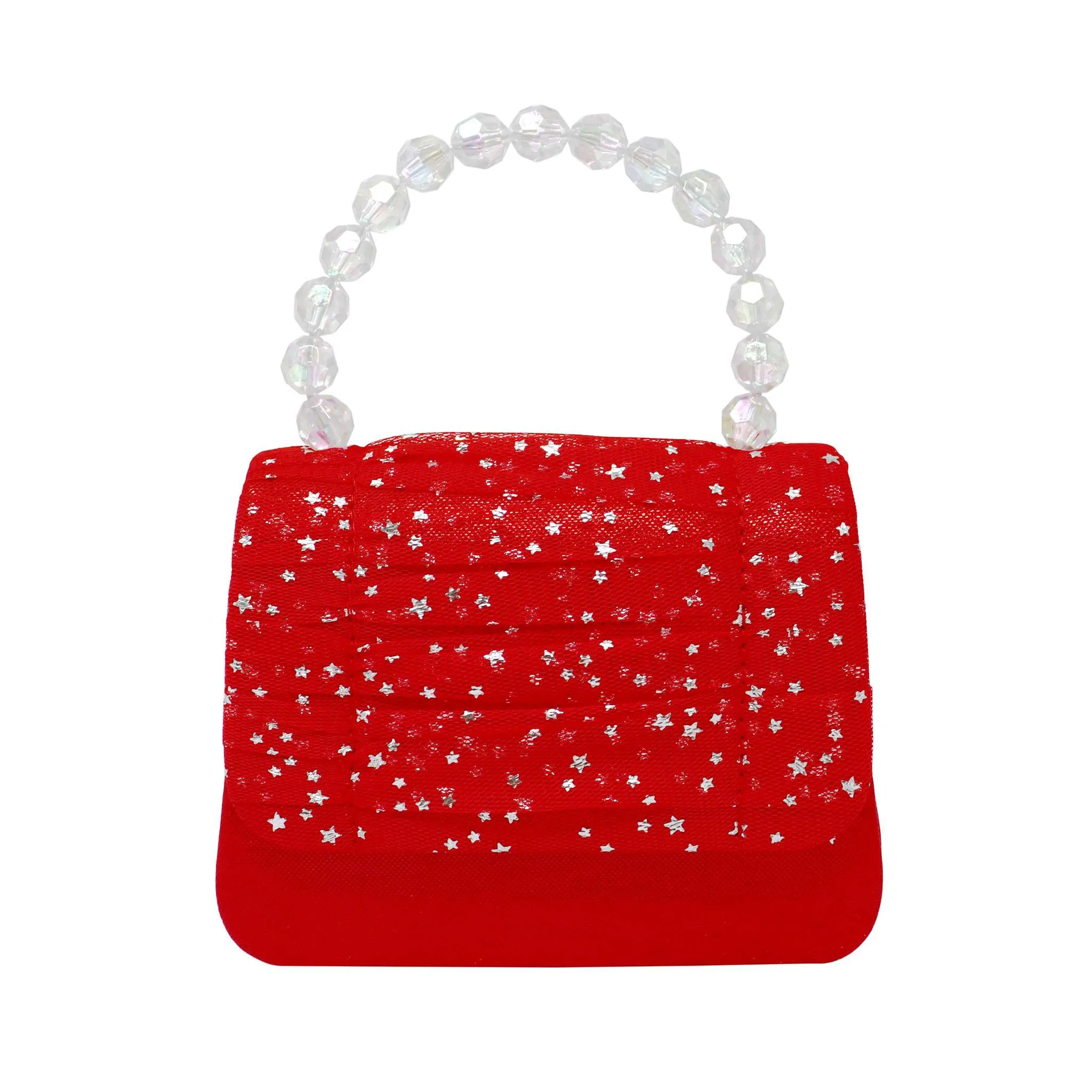 This Pink Poppy Twinkling Christmas Handbag is fashioned with a bright red fabric and a glistening star patterned tulle flap. Completed with a beaded handle, magnetic stud for easy closure and an additional cord shoulder strap for hands-free play, it is the perfect accessory for any occasion.