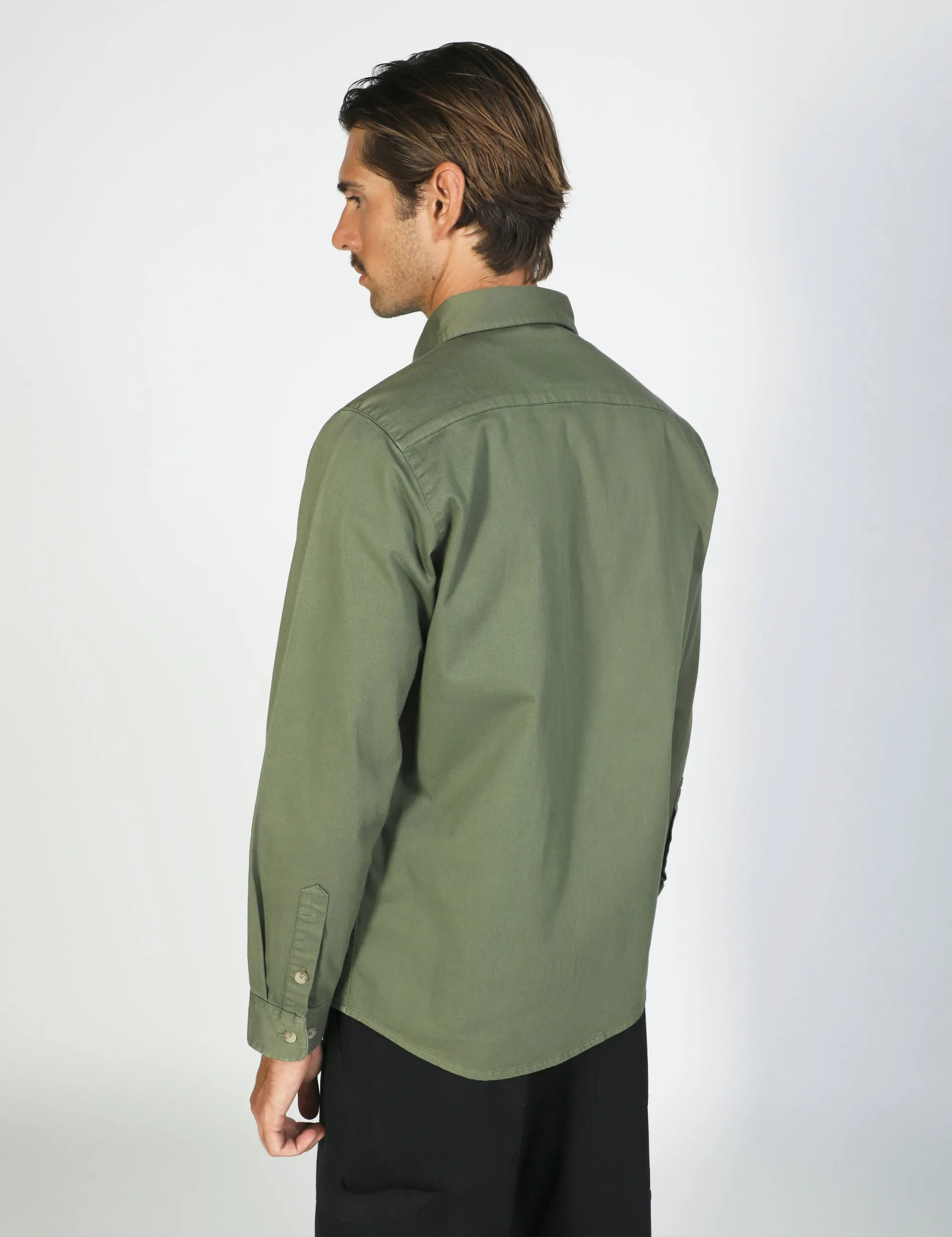 1. This shirt is all about the fabric! Custom micro-herringbone weave with a soft finish.